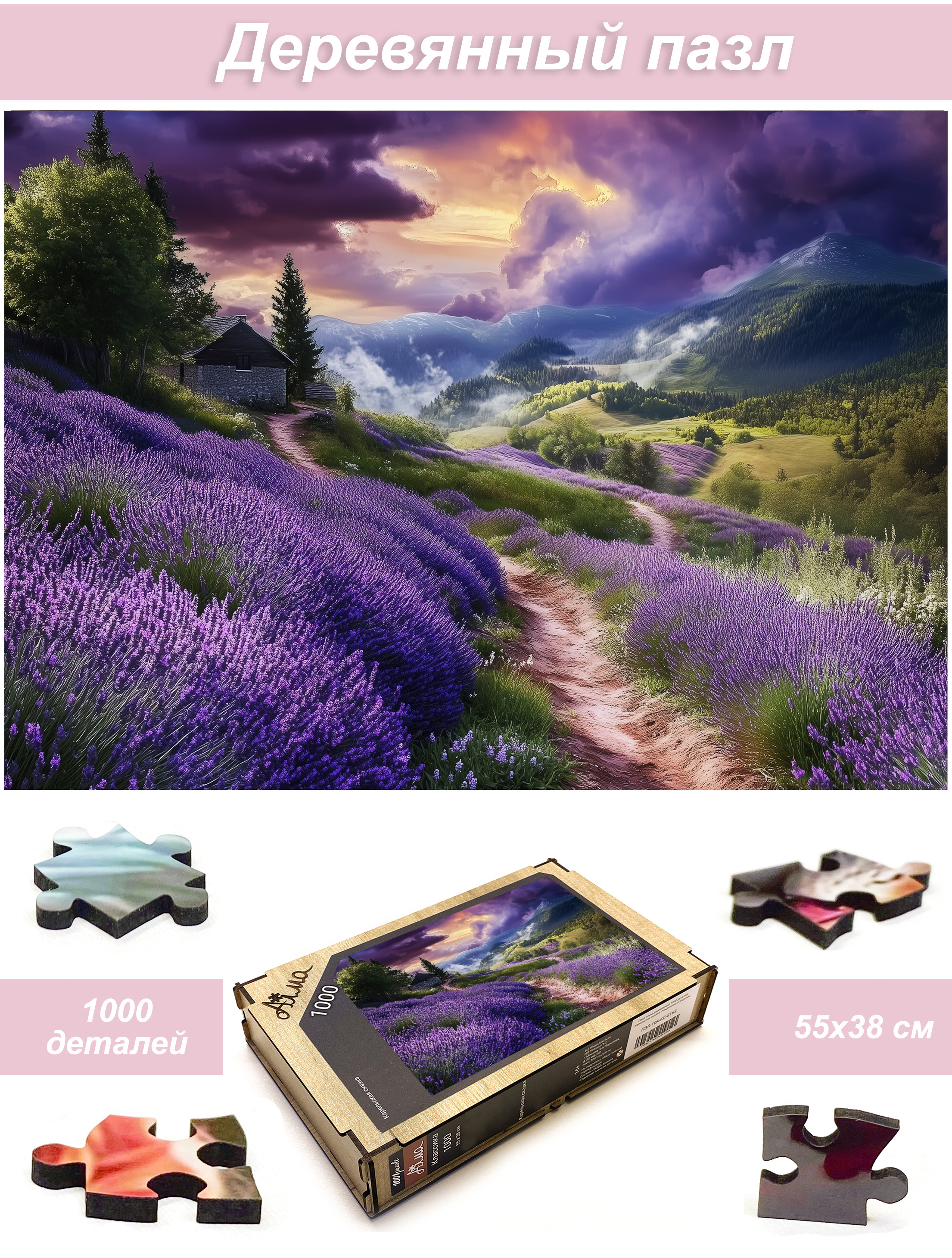 Пазл Алма деревянный 1000 деталей. Волшебство природы. Цветущее поле лаванды