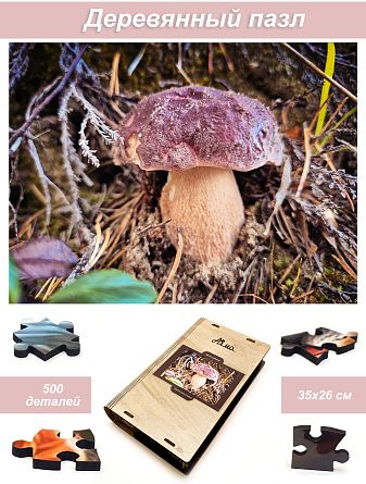 Деревянный фигурный пазл бренда 1001puzzle - уникальная настольная игра, прекрасный подарок для взрослых и для детей. Деревянная головоломка с нестандартной нарезкой состоит из 500 ярких фигурных деталей. Каждый элемент пазла - уникален, что делает сборку еще увлекательнее. Пазлы из дерева отличаются от обычных картонных надежностью и долговечностью. Кроме того, они станут прекрасным украшением интерьера, будет радовать не только в момент сборки, но и после. В нашем ассортименте есть и яркие, веселые пазлы, есть и имитация картин, пейзажи, домашние и дикие животные. Можно подобрать рисунок на любой вкус. Пазл упакован в уникальную коробку - она же служит местом для сборки, а, при желании, вы можете использовать планшет для сборки как рамку, чтобы закрепить картину и повесить ее на стену. Все пазлы мы упаковываем дополнительно в надежную транспортировочную коробку и, очень надеемся, что она поможет пережить нашему товару сложную дорогу к вам. Серию "Карельская сказка" мы посветили этому чудесному краю, в который невозможно не влюбиться с первого раза. В этих фотографиях - душа севера: безмолвная гладь озер, отражающих небо, бескрайние хвойные леса, хранящие вековую тишину, и особая магия — тихая охота. Здесь, в мхах под соснами, прячется царь гриб — боровик, главный трофей для тех, кто понимает язык леса. Бескрайние озера, сосновые боры, скалы.. Рай для грибников - боровики и подосиновики, лисички и грузди как будто сами запрыгивают в корзинку. А ягоды - наслаждение вкусом, кладезь витаминов, что может быть прекраснее черники или брусники в сосновом лесу?