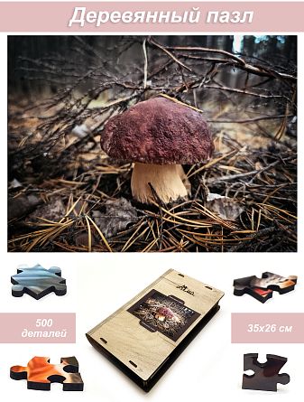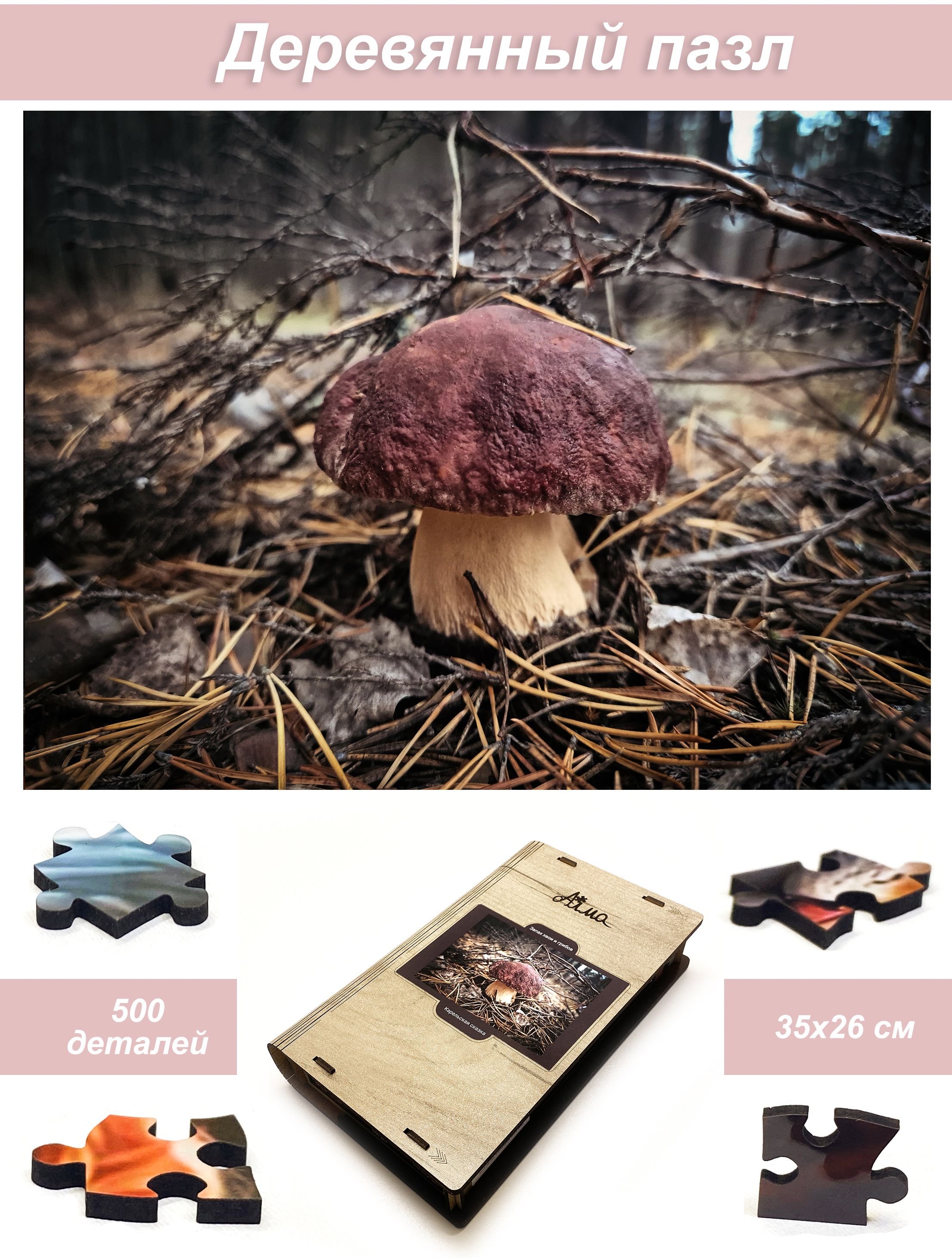 Деревянный фигурный пазл бренда 1001puzzle - уникальная настольная игра, прекрасный подарок для взрослых и для детей. Деревянная головоломка с нестандартной нарезкой состоит из 500 ярких фигурных деталей. Каждый элемент пазла - уникален, что делает сборку еще увлекательнее. Пазлы из дерева отличаются от обычных картонных надежностью и долговечностью. Кроме того, они станут прекрасным украшением интерьера, будет радовать не только в момент сборки, но и после. В нашем ассортименте есть и яркие, веселые пазлы, есть и имитация картин, пейзажи, домашние и дикие животные. Можно подобрать рисунок на любой вкус. Пазл упакован в уникальную коробку - она же служит местом для сборки, а, при желании, вы можете использовать планшет для сборки как рамку, чтобы закрепить картину и повесить ее на стену. Все пазлы мы упаковываем дополнительно в надежную транспортировочную коробку и, очень надеемся, что она поможет пережить нашему товару сложную дорогу к вам. Серию "Карельская сказка" мы посветили этому чудесному краю, в который невозможно не влюбиться с первого раза. В этих фотографиях - душа севера: безмолвная гладь озер, отражающих небо, бескрайние хвойные леса, хранящие вековую тишину, и особая магия — тихая охота. Здесь, в мхах под соснами, прячется царь гриб — боровик, главный трофей для тех, кто понимает язык леса. Бескрайние озера, сосновые боры, скалы.. Рай для грибников - боровики и подосиновики, лисички и грузди как будто сами запрыгивают в корзинку. А ягоды - наслаждение вкусом, кладезь витаминов, что может быть прекраснее черники или брусники в сосновом лесу?