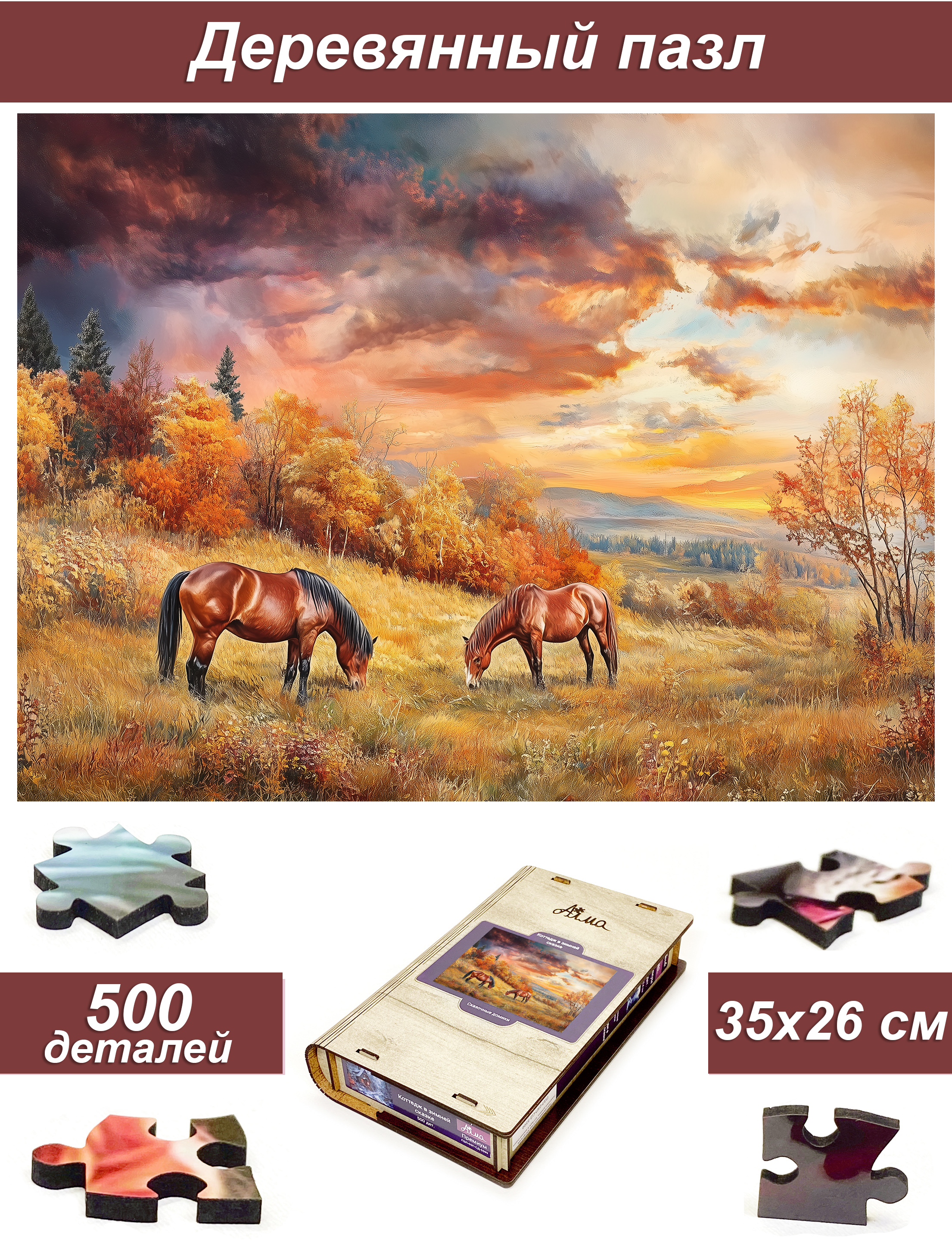 Пазл Алма деревянный 500 деталей. Лошади. Дыхание осени