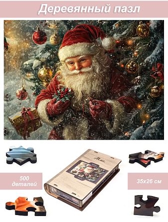 Пазл Алма деревянный 500 деталей. Новый год. Дед Мороз