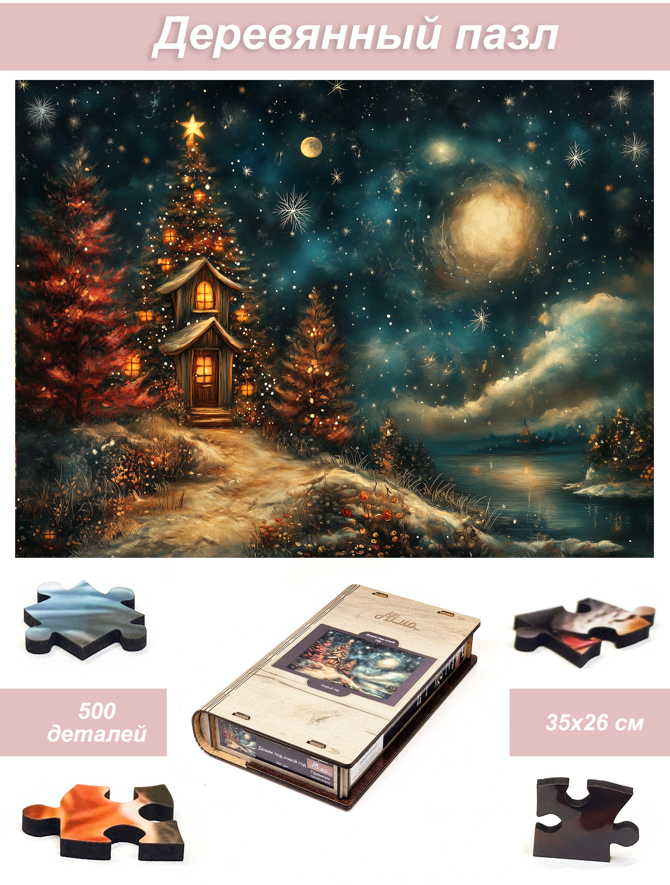 Пазл Алма деревянный 500 деталей. Новый год. Домик под новой год