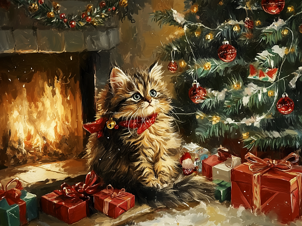 Пазл Алма деревянный 500 деталей. Новый год. Праздничный кот