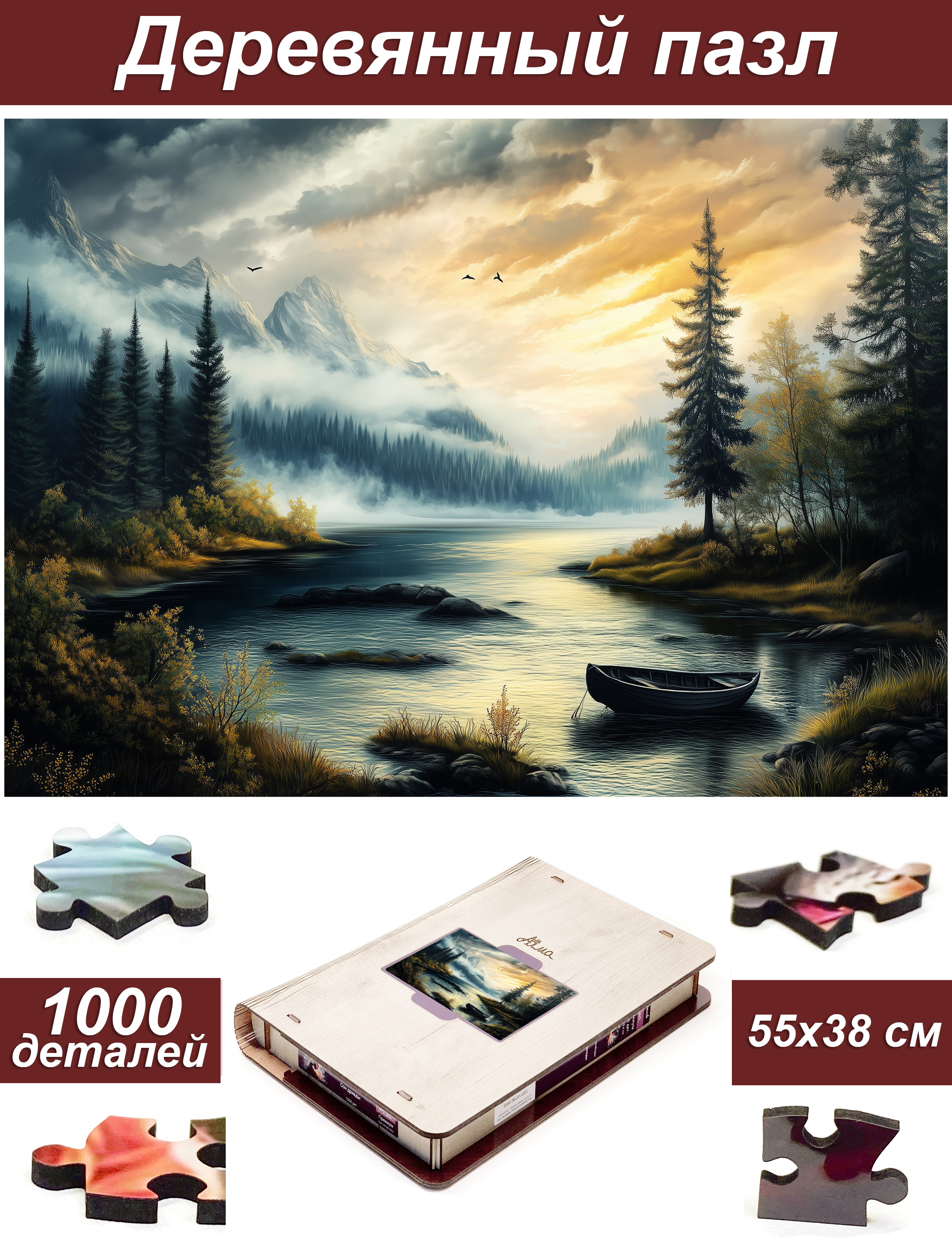 Пазл Алма деревянный ПРЕМИУМ 1000 деталей. Волшебство природы. Озеро туманов