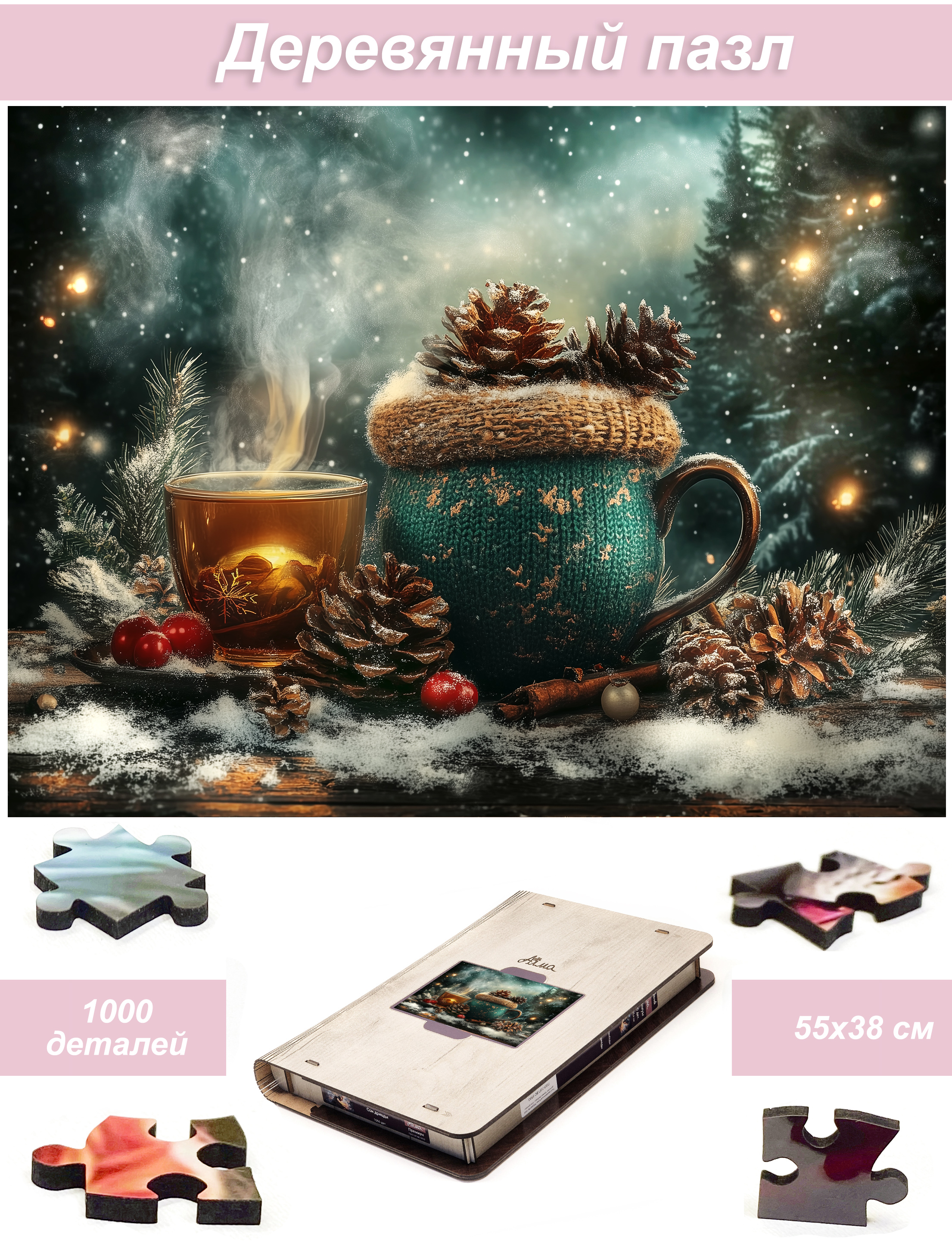 Пазл Алма ПРЕМИУМ деревянный 1000 деталей. Новый год. Ожидание чуда