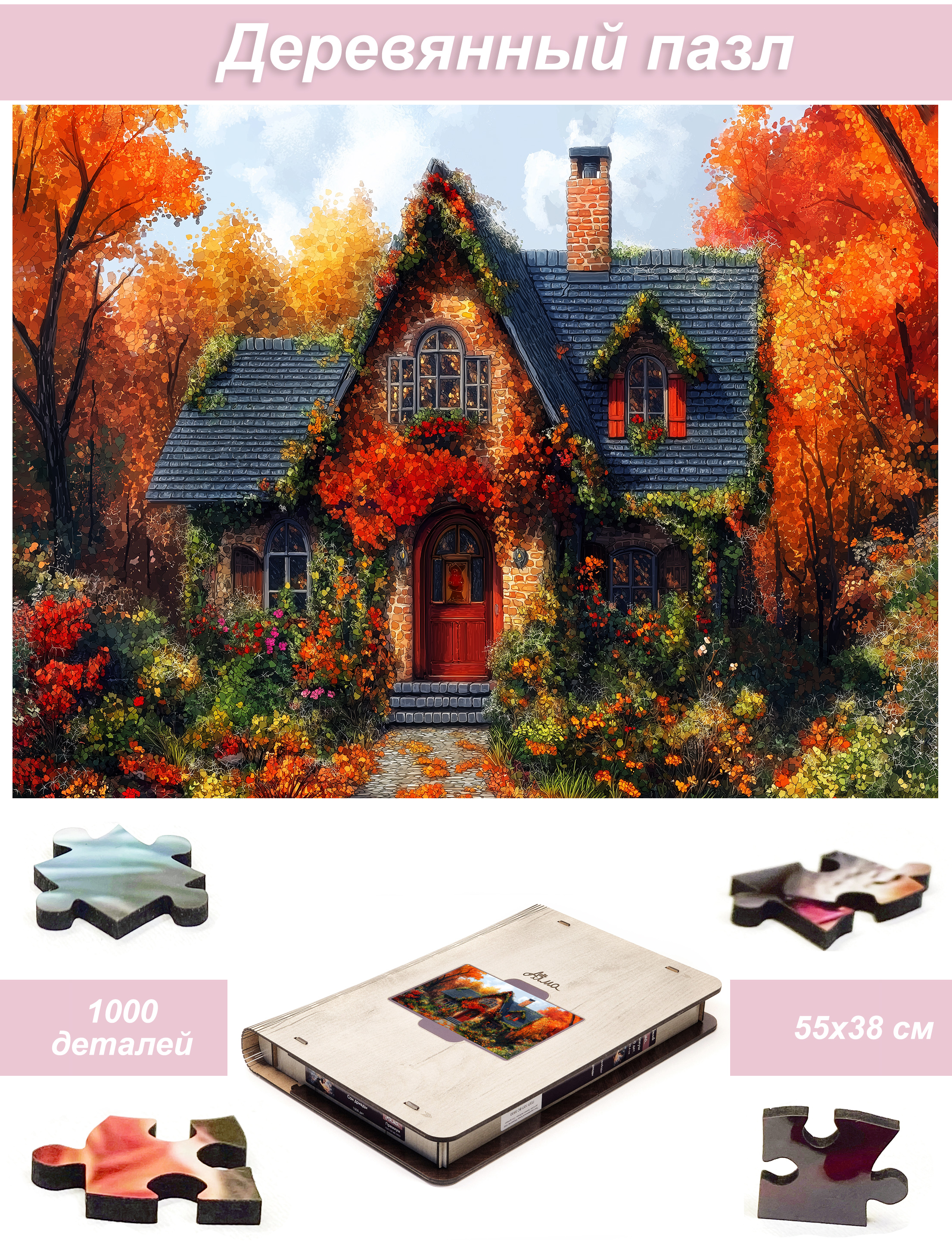 Пазл Алма ПРЕМИУМ деревянный 1000 деталей. Сказочные домики. Цветочный вальс