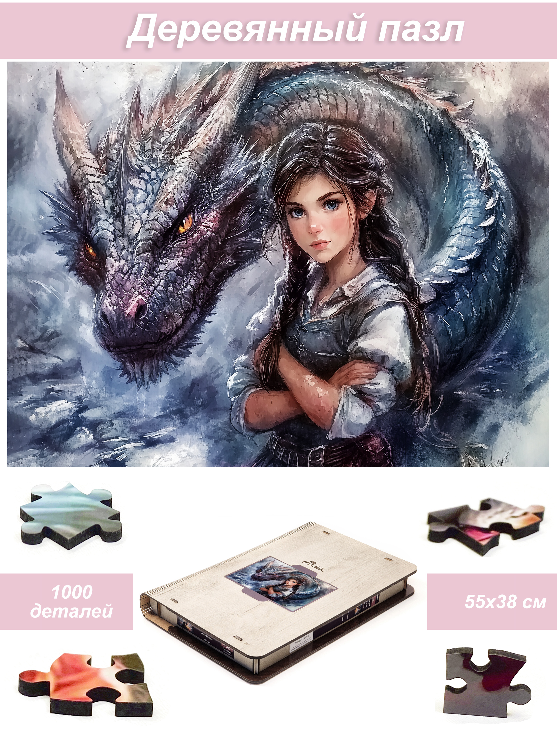 Пазл Алма ПРЕМИУМ деревянный 1000 деталей. Сказочный мир. Хранительница драконов