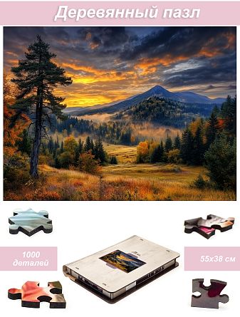 Пазл Алма ПРЕМИУМ деревянный 1000 деталей. Волшебство природы. Осенний шёпот гор