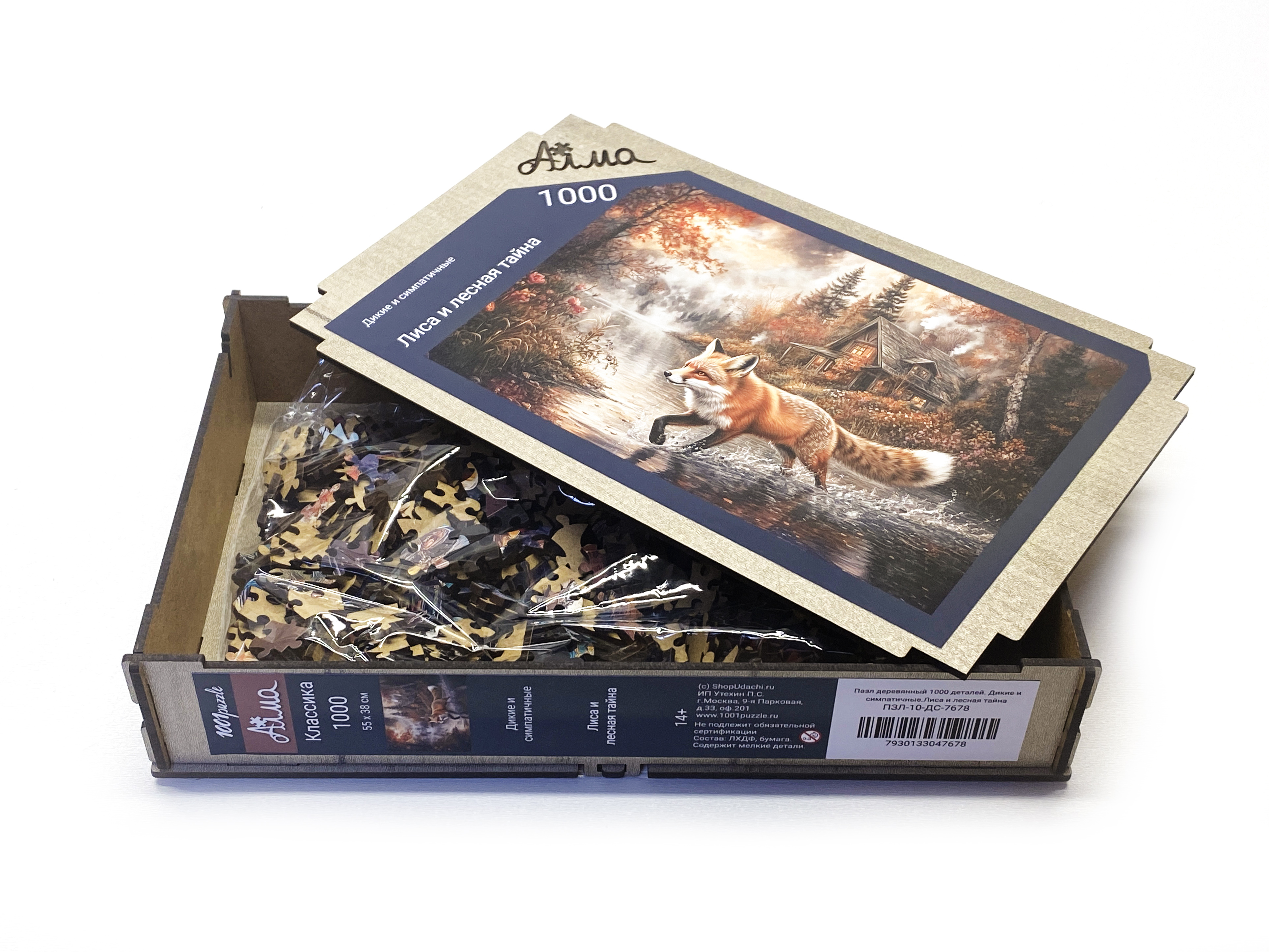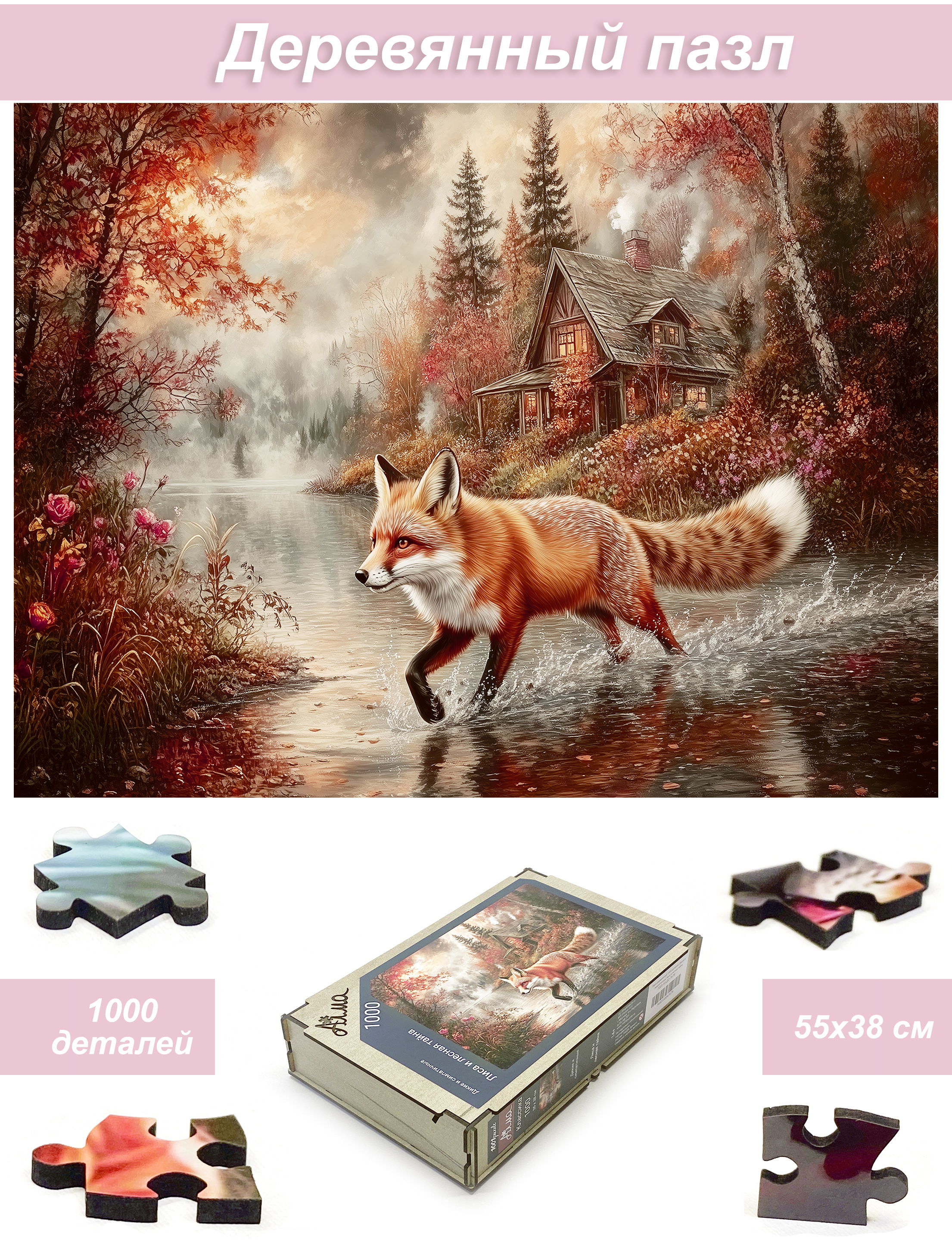 Пазл деревянный Алма 1000 деталей. Дикие и симпатичные. Лиса и лесная тайна
