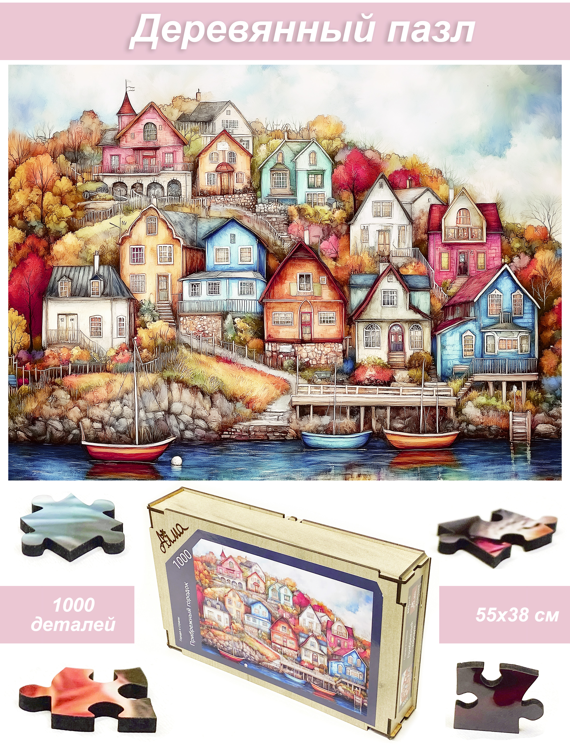 Пазл деревянный Алма 1000 деталей. Города и страны. Прибрежный городок.