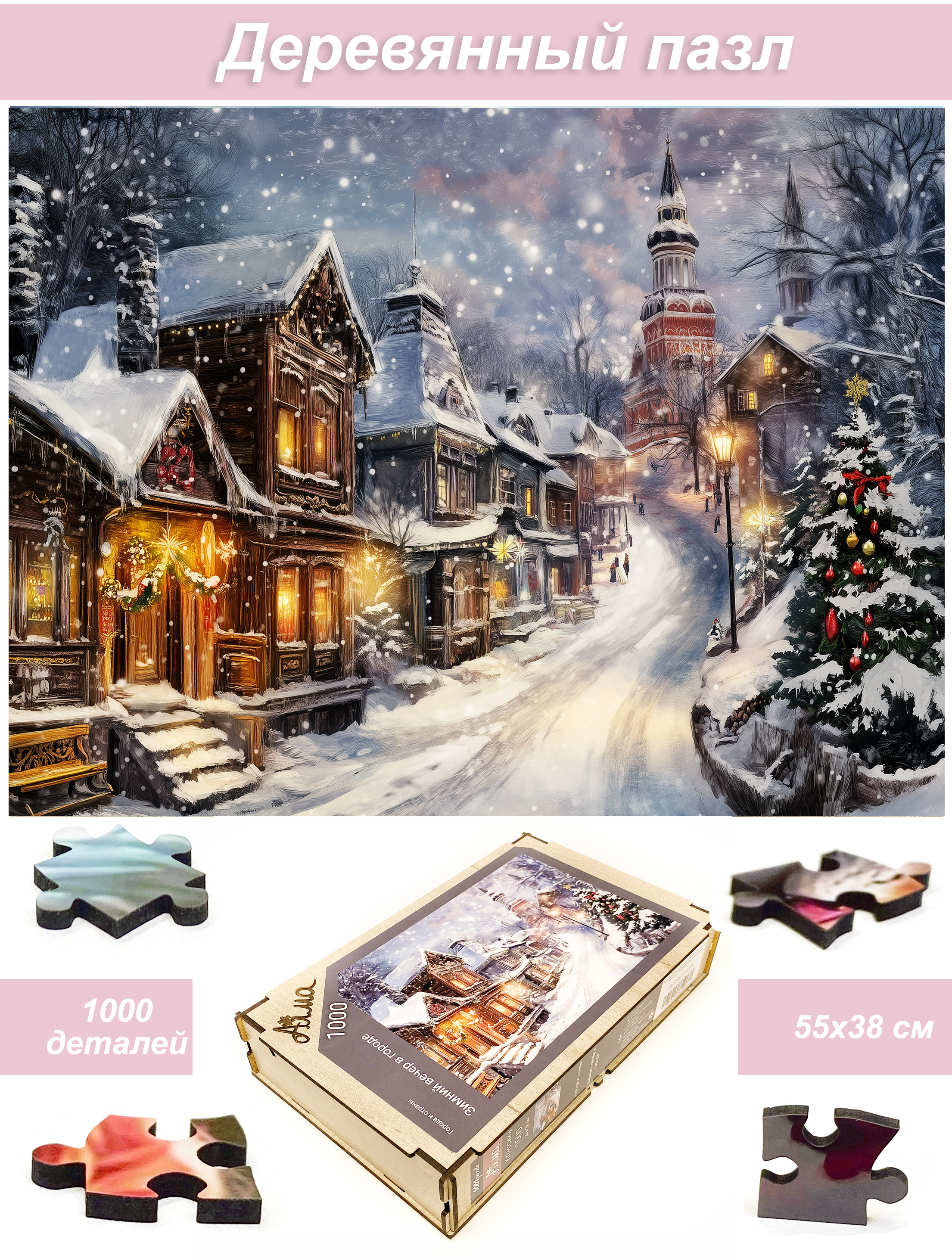 Пазл деревянный Алма 1000 деталей. Города и страны. Зимний вечер в городе