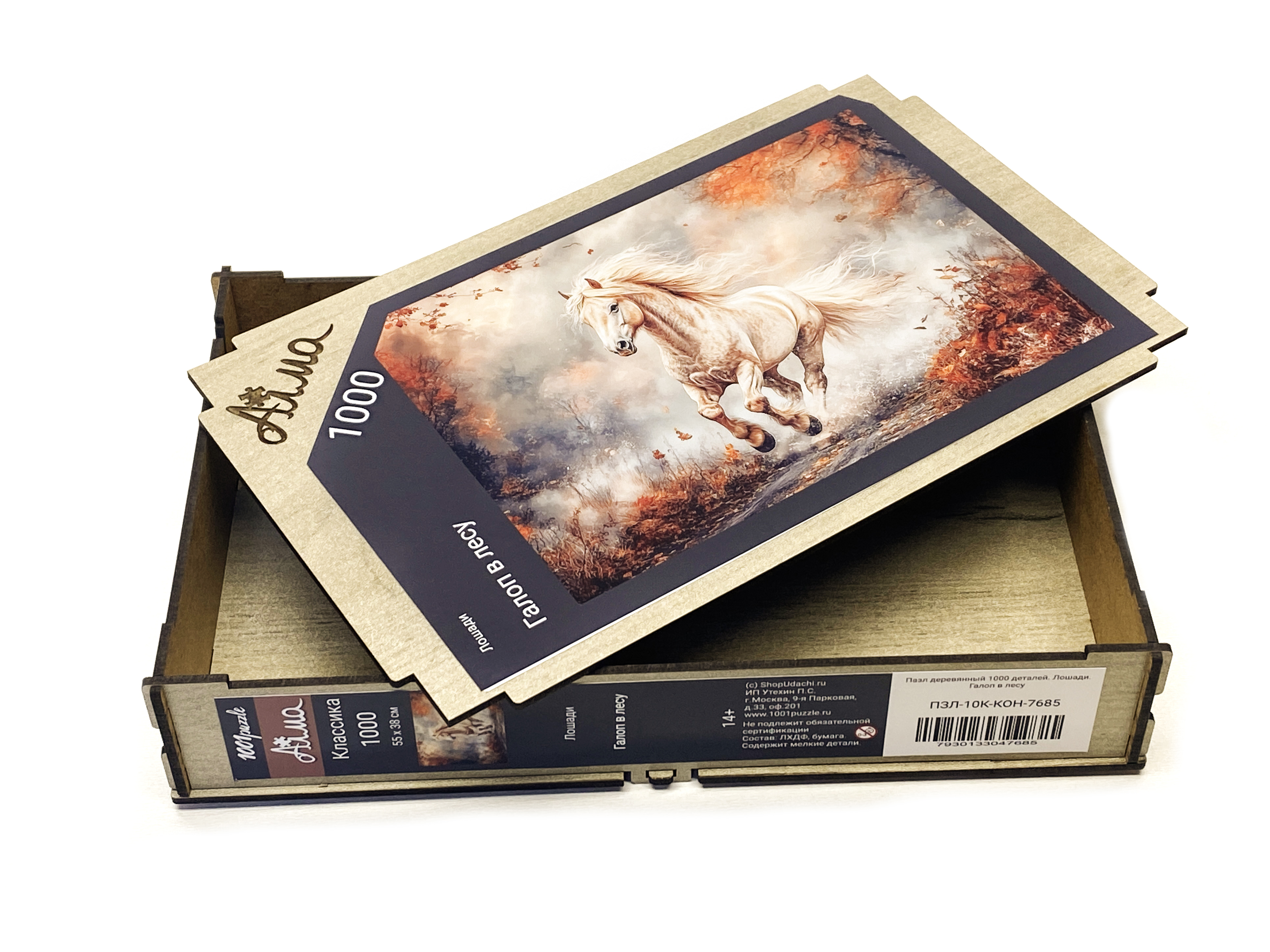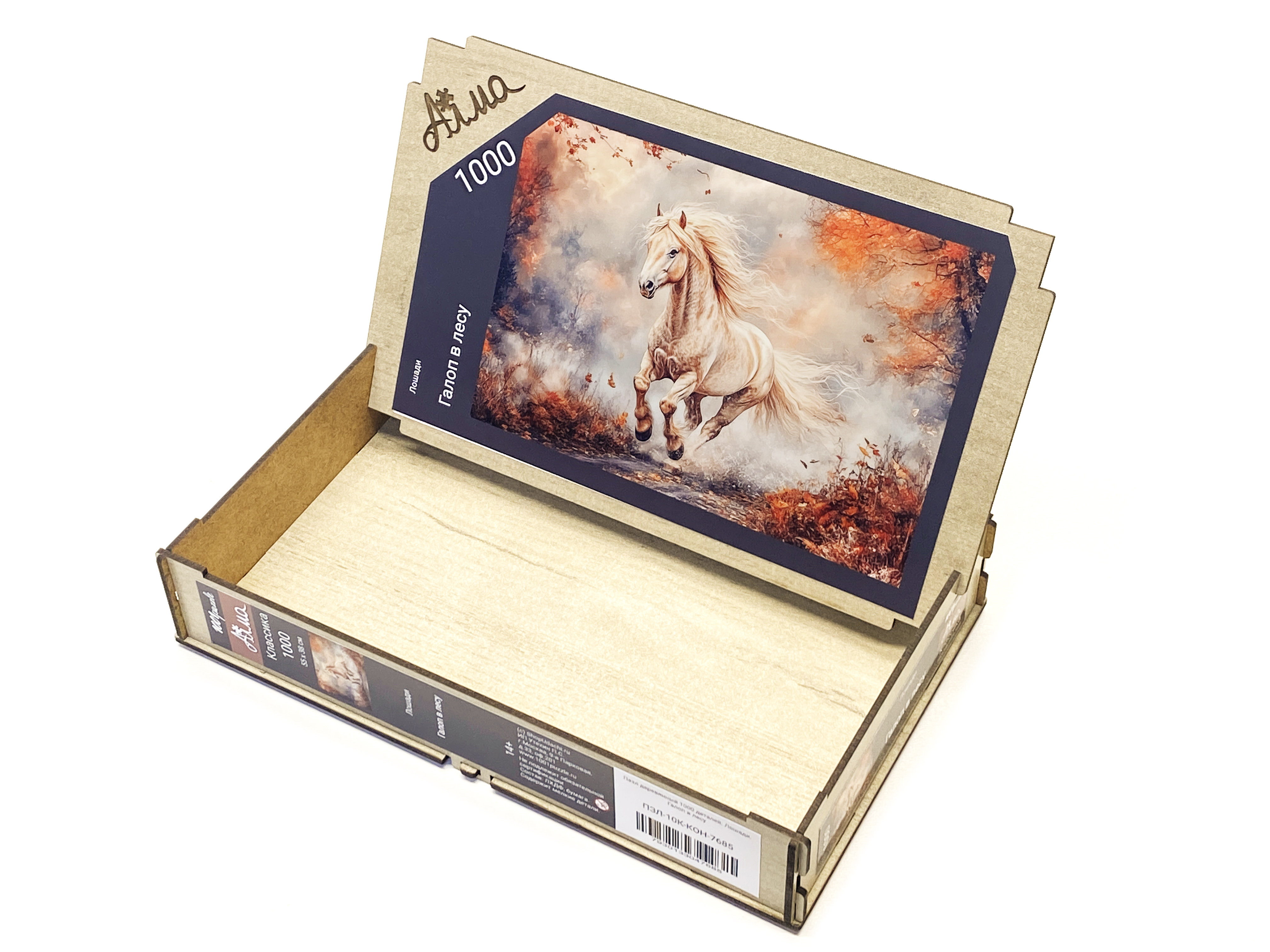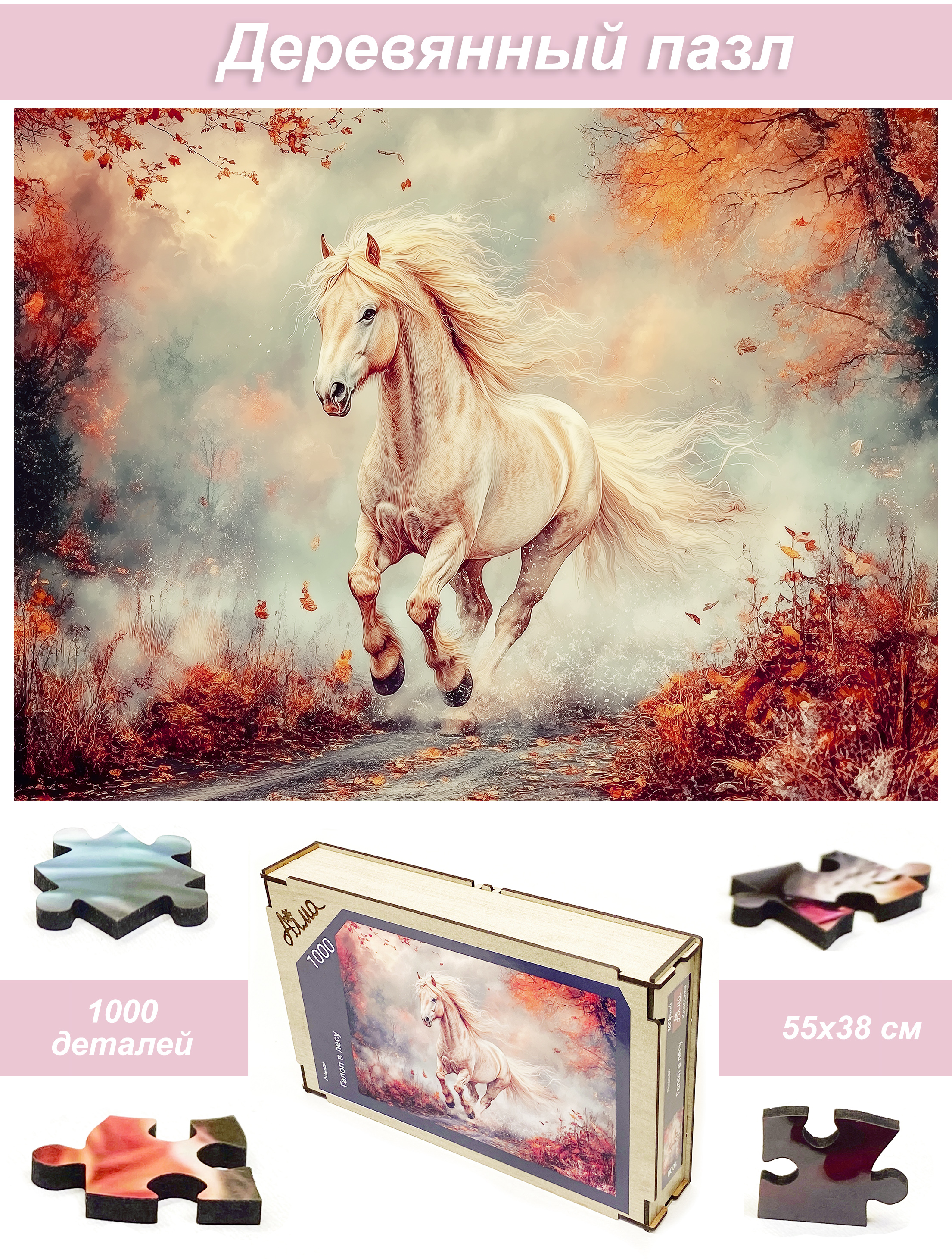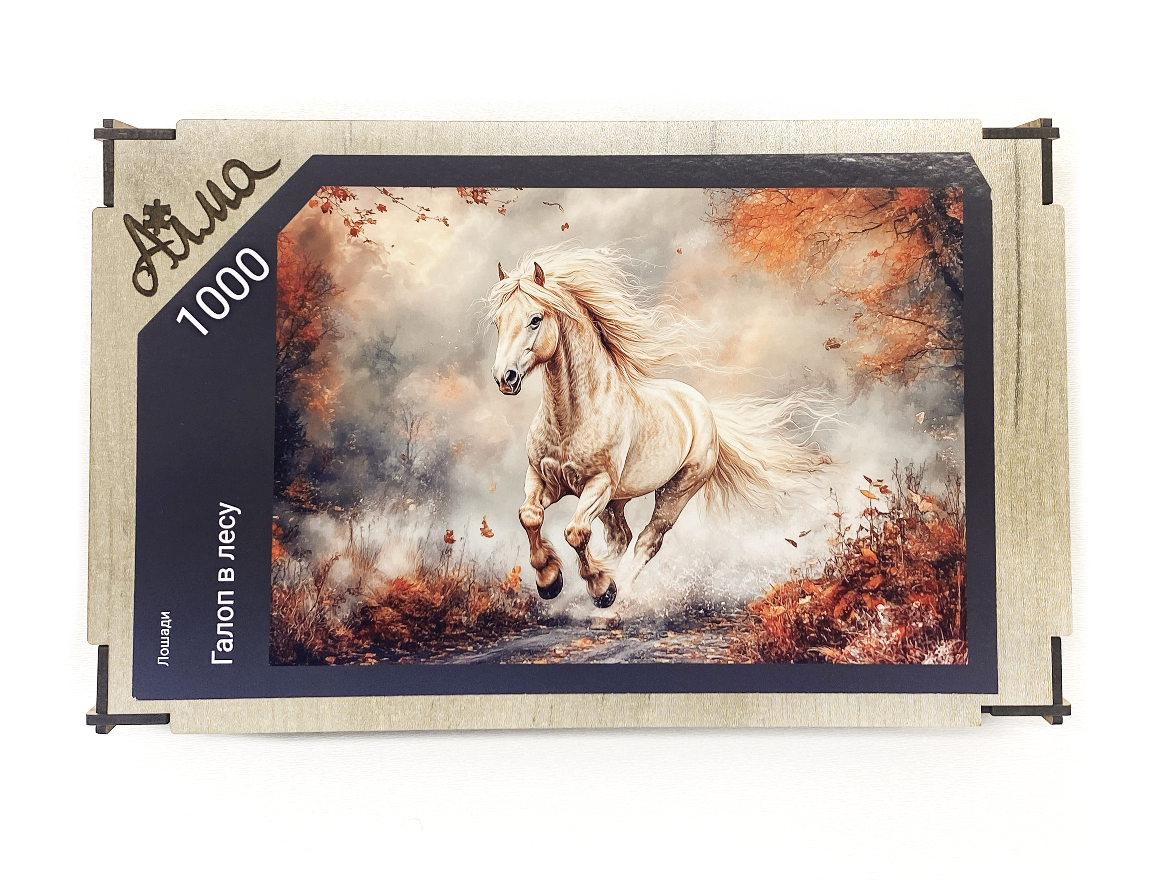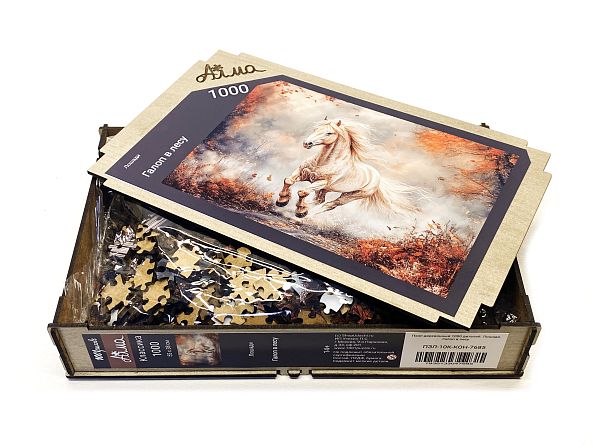 Пазл деревянный Алма 1000 деталей. Лошади. Галоп в лесу.