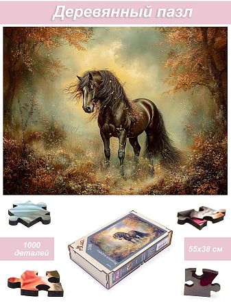 Пазл деревянный Алма 1000 деталей Лошади. Вороной жеребец