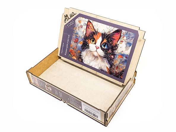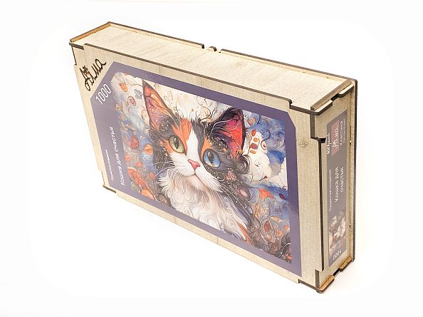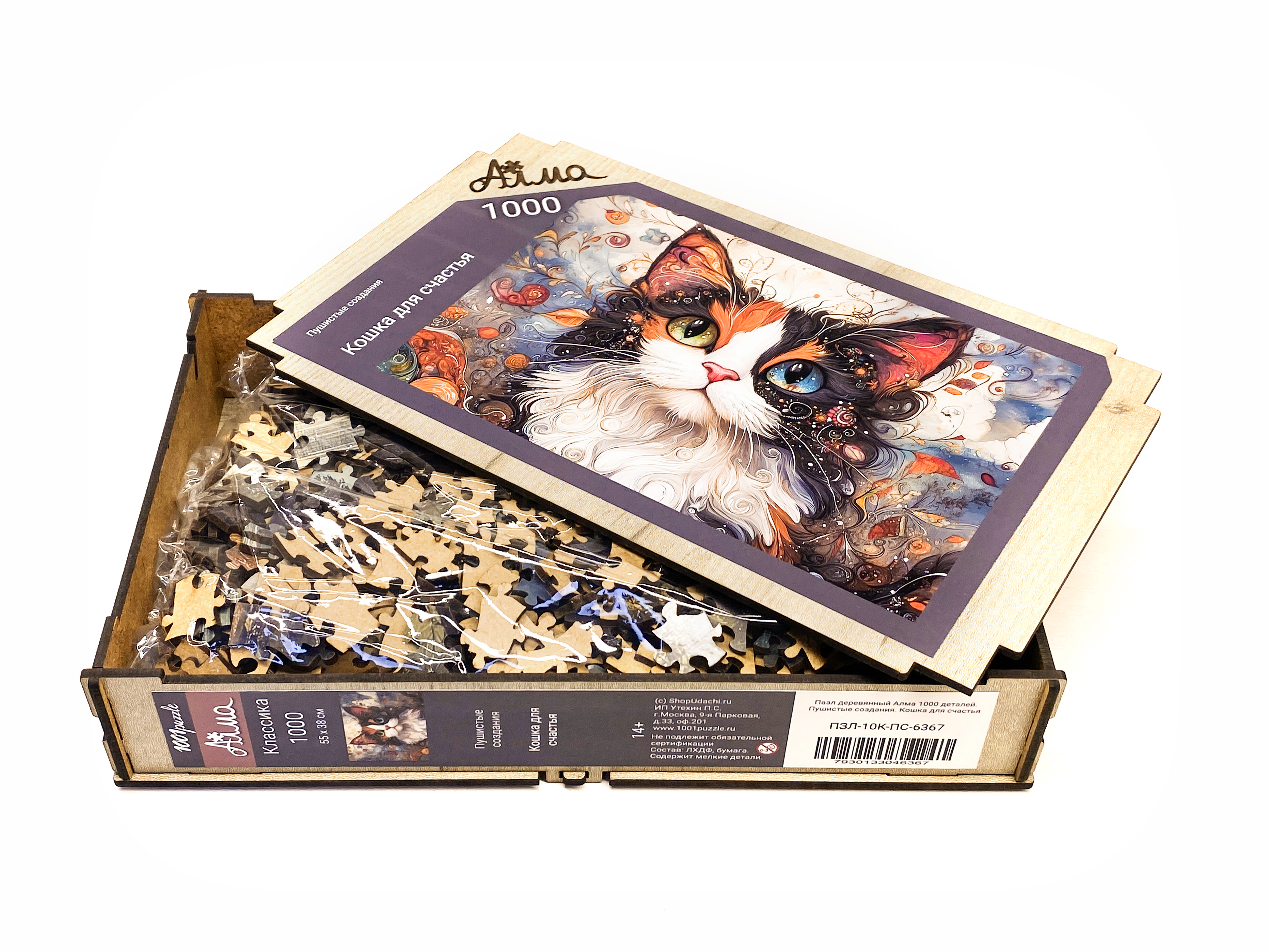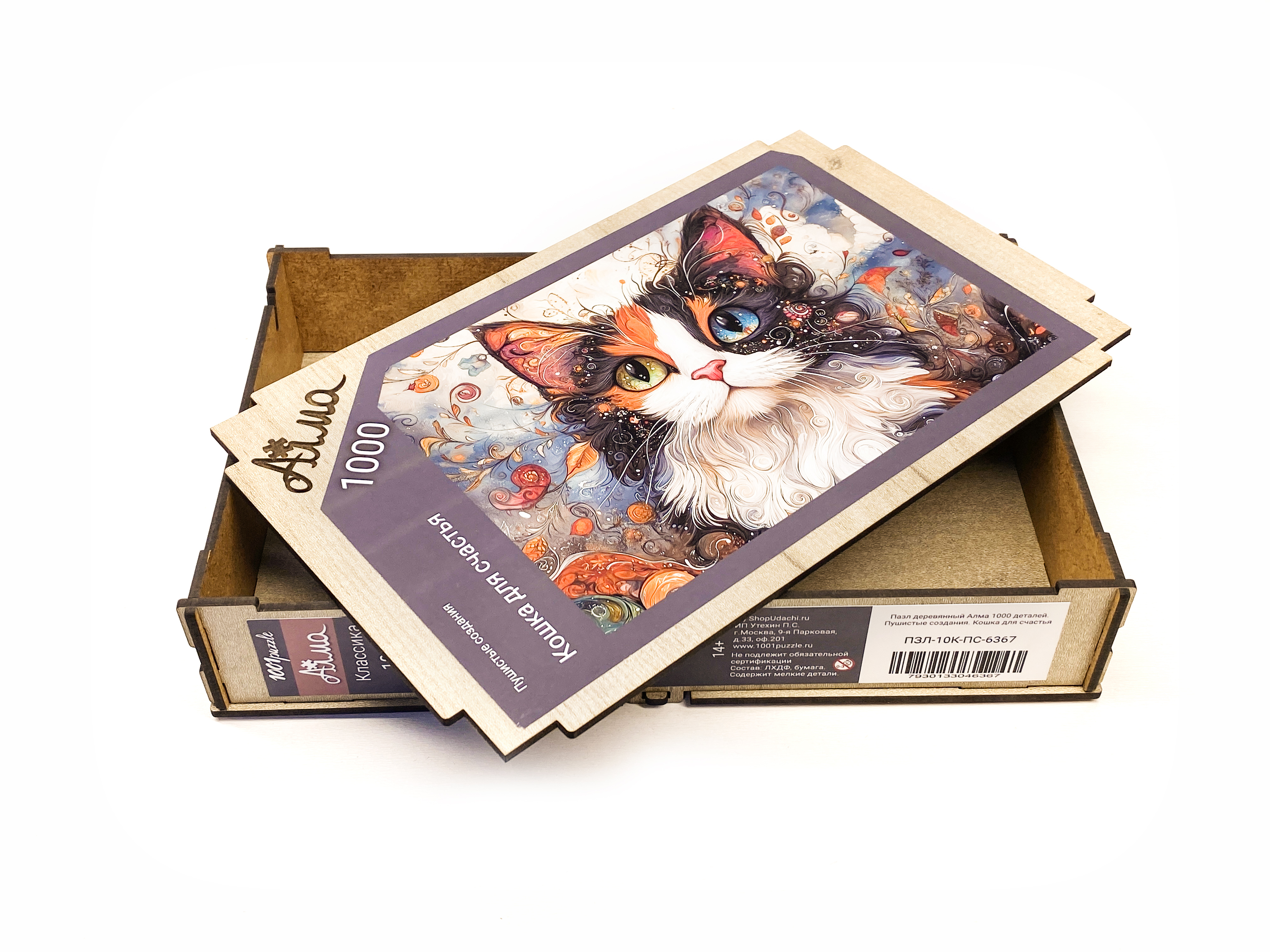 Пазл деревянный Алма 1000 деталей. Пушистые создания. Кошка для счастья