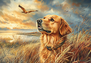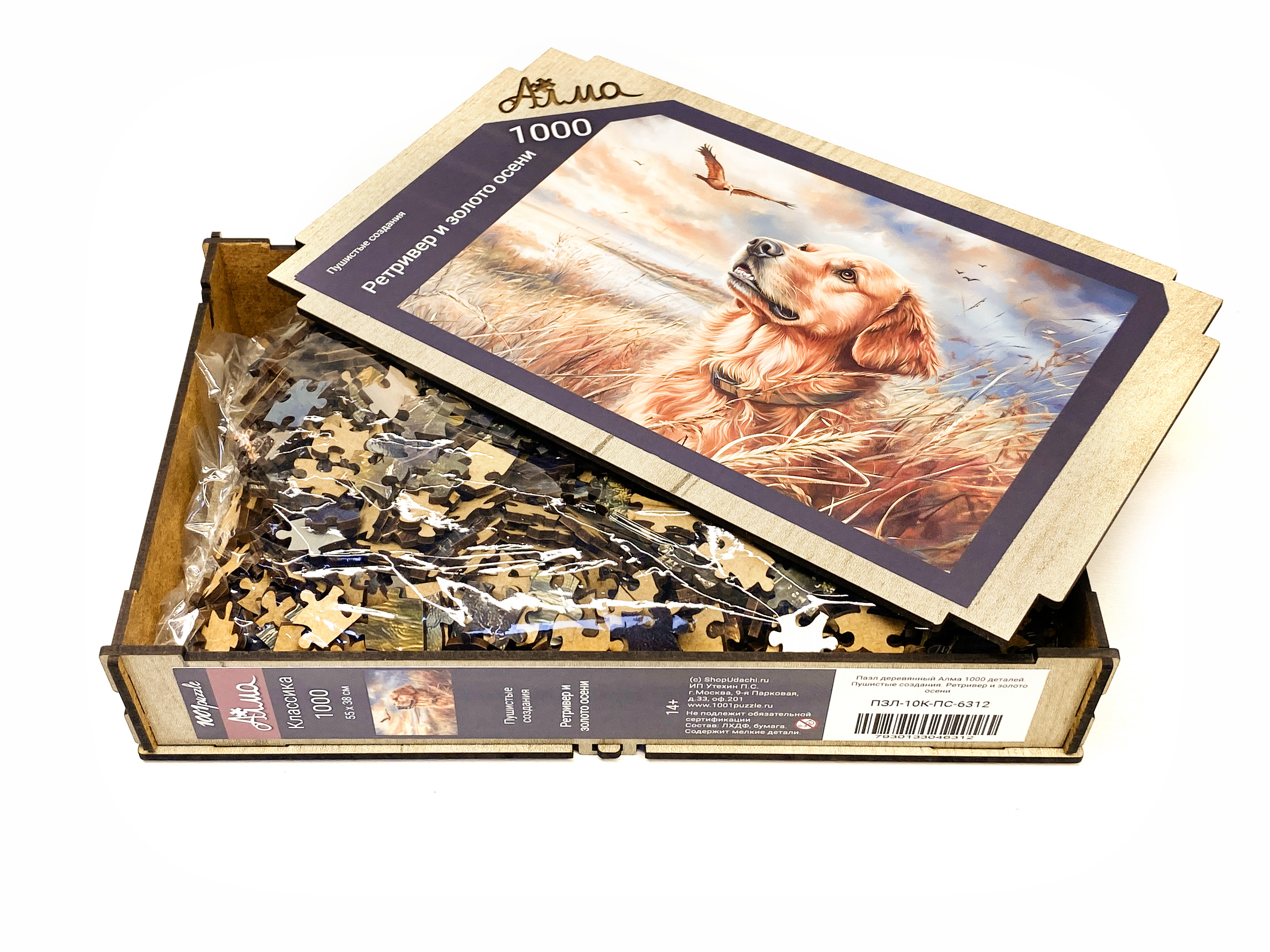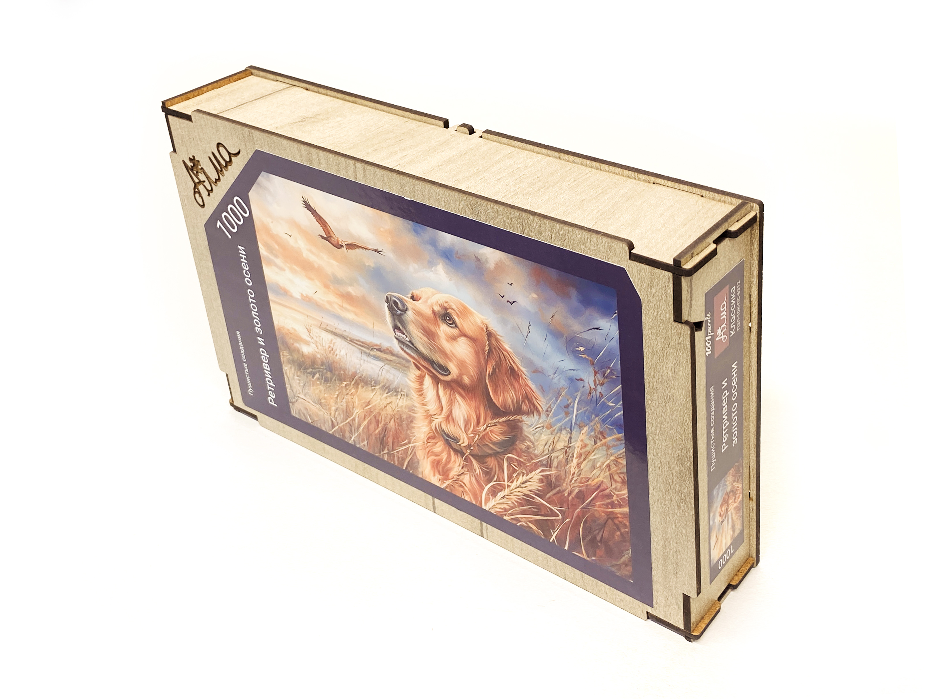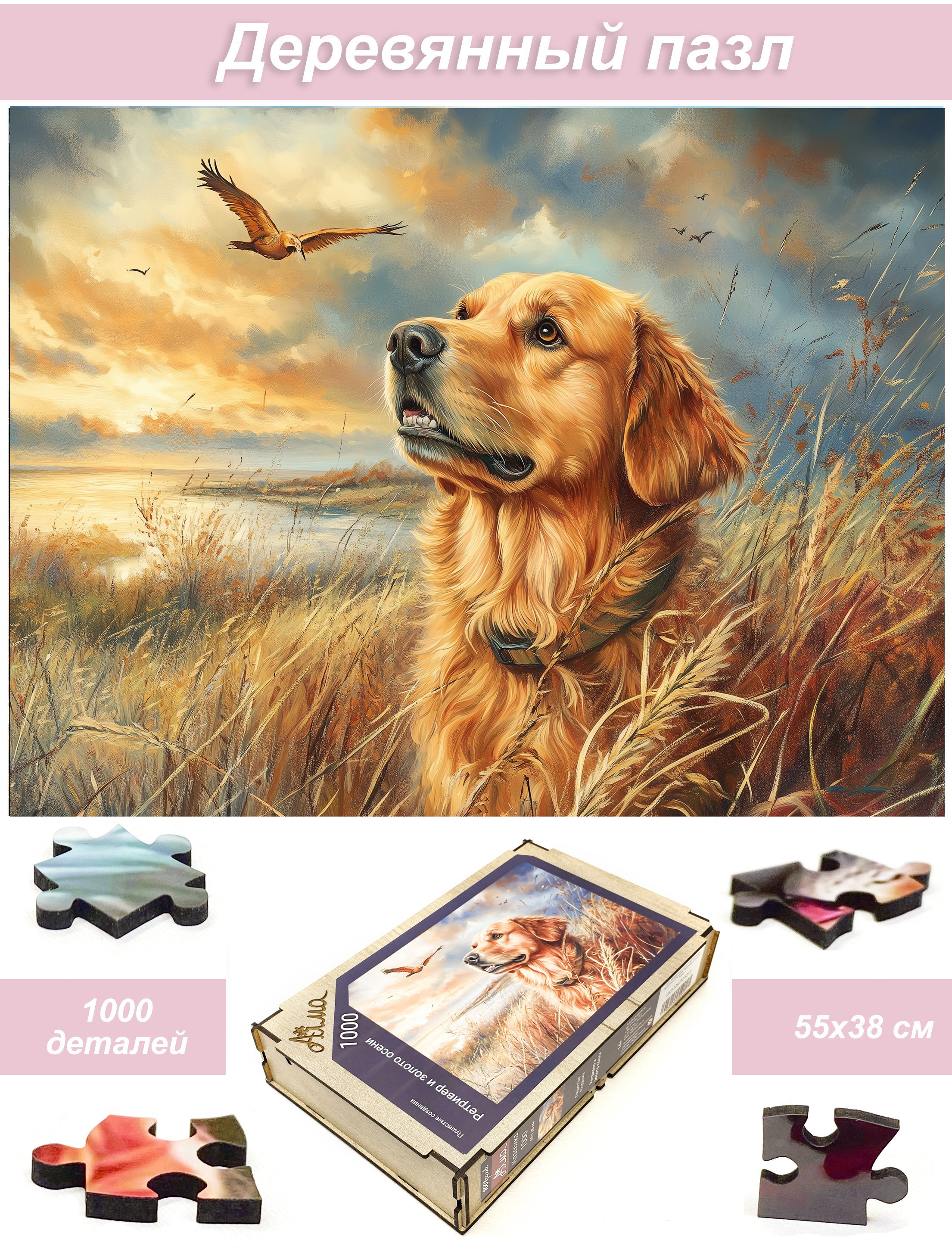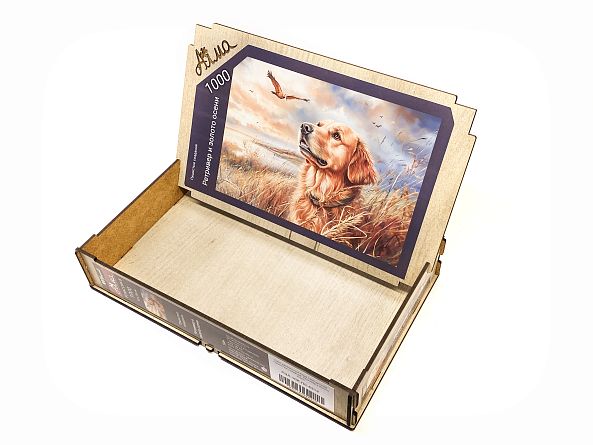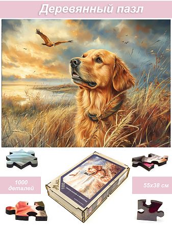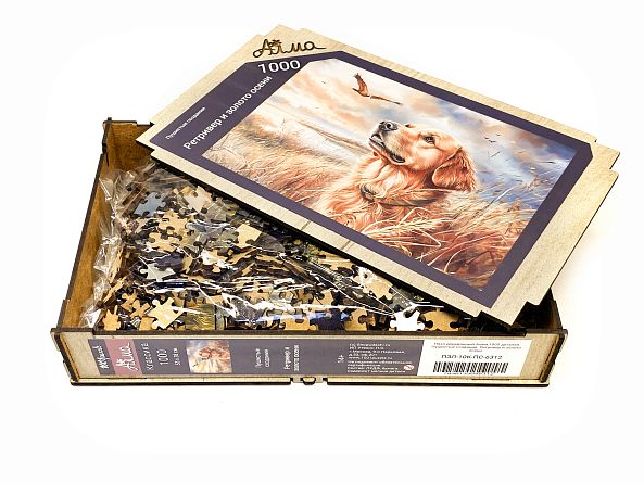 Пазл деревянный Алма 1000 деталей. Пушистые создания. Ретривер и золото осени