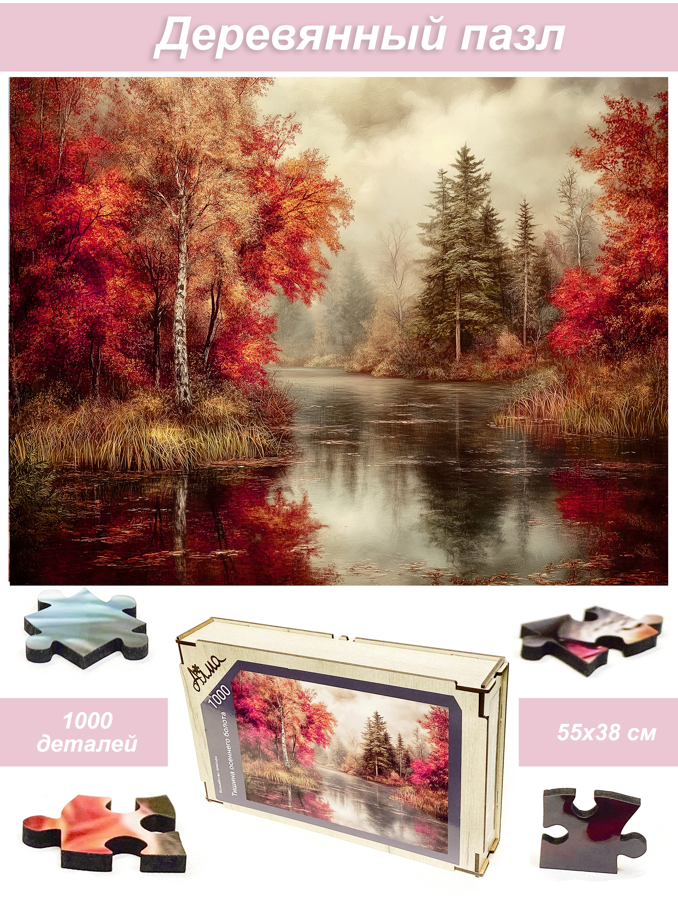 Пазл деревянный Алма 1000 деталей. Волшебство природы. Тишина осеннего болота.