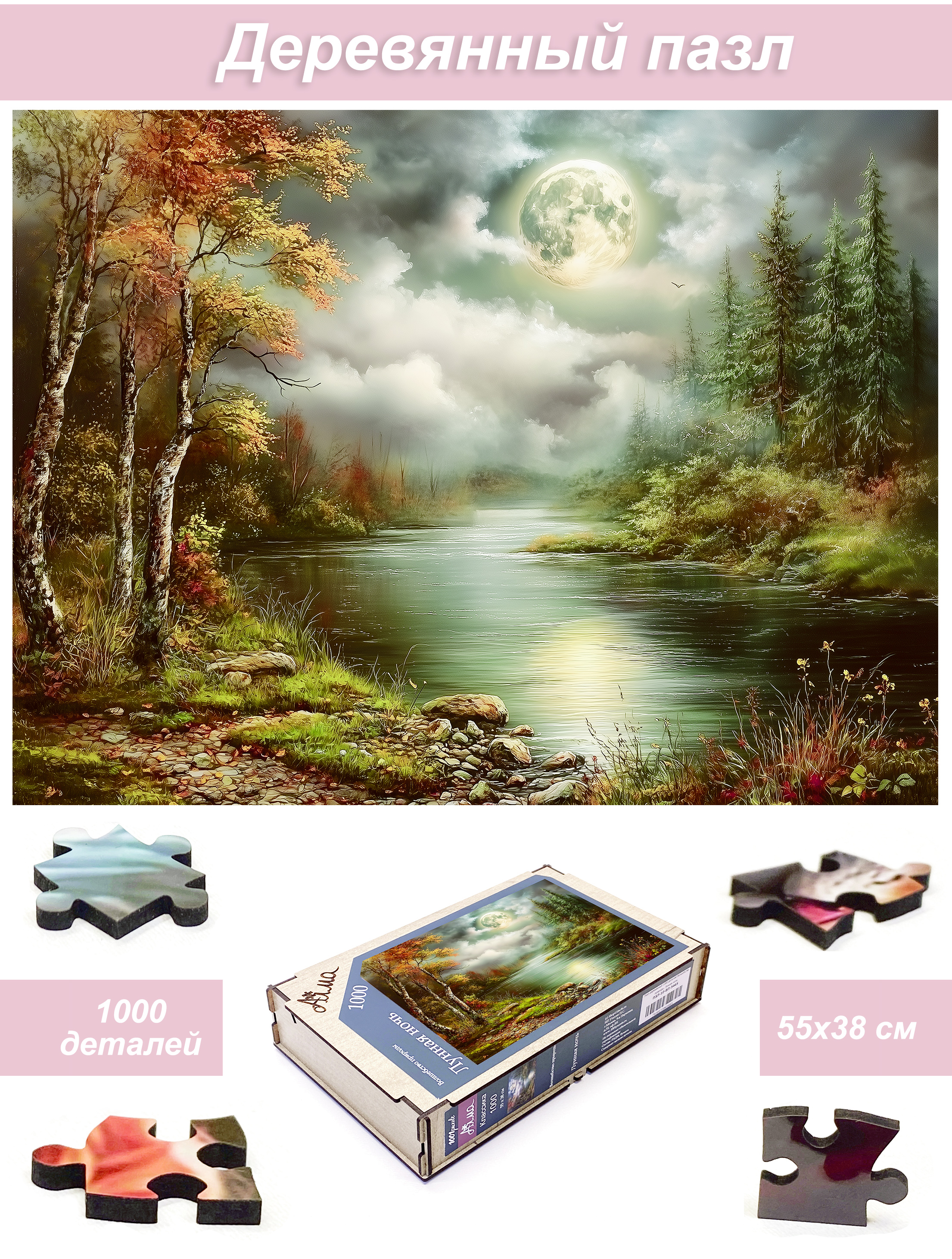 Пазл деревянный Алма 1000 деталей Волшебство природы. Лунная ночь