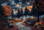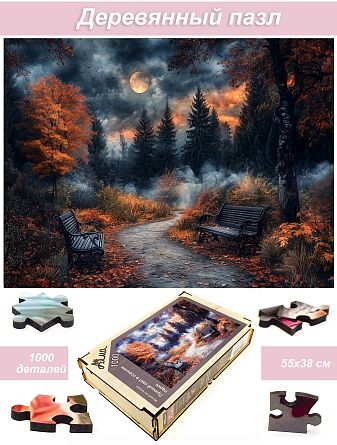 Пазл деревянный Алма 1000 деталей. Волшебство природы. Лунный свет в осеннем парке