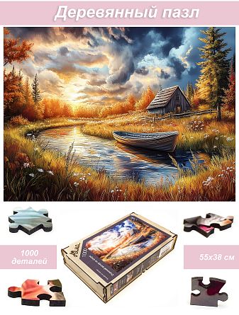 Пазл деревянный Алма 1000 деталей. Волшебство природы. Осенний вечер на озере