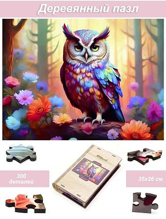 Пазл деревянный Алма 300 деталей Самые яркие. Сова №1