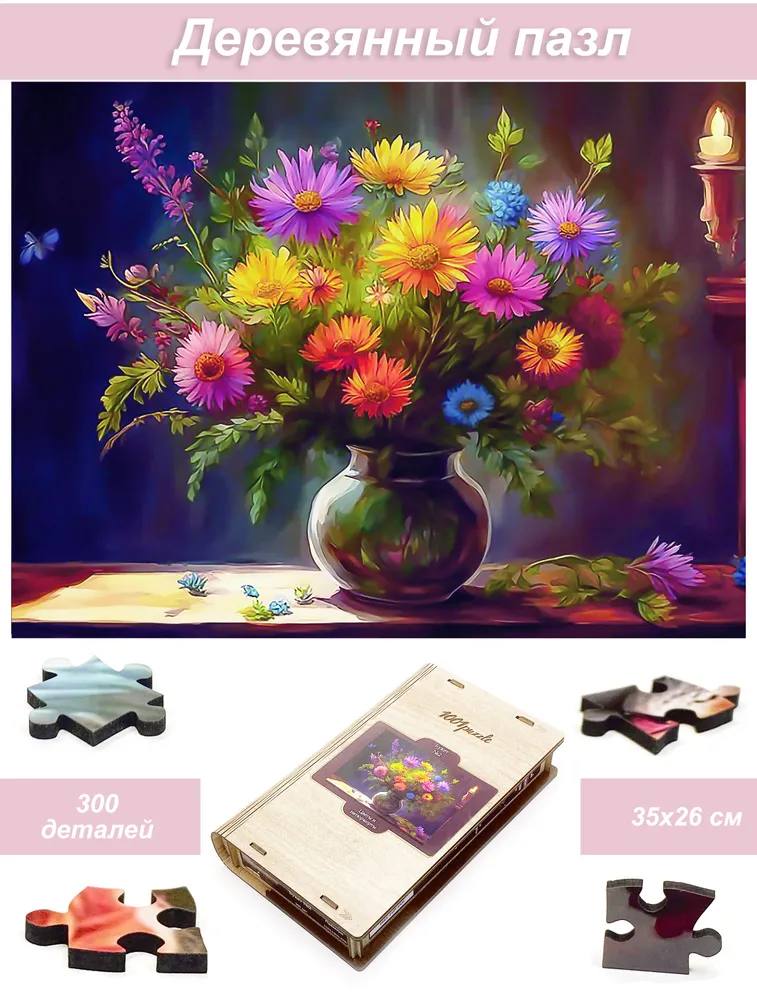 Пазл деревянный Алма 300 деталей Цветы и натюрморты. Букет №2