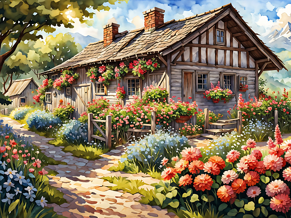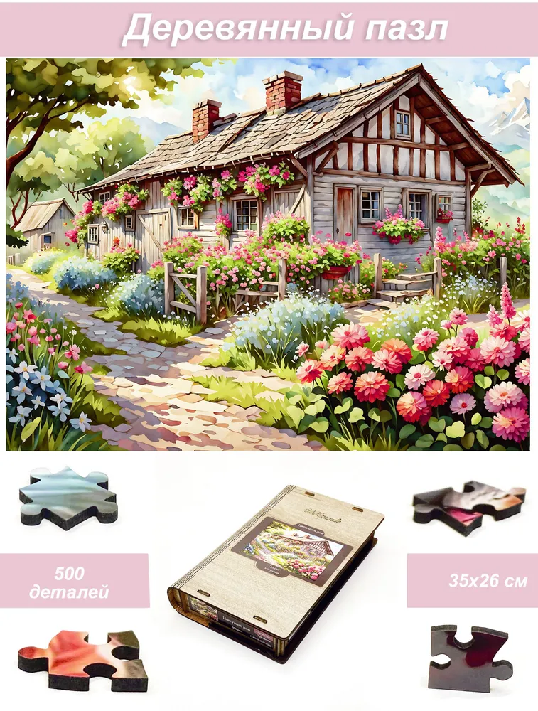 Пазл деревянный Алма 500 деталей Домик в деревне. Цветущий дом