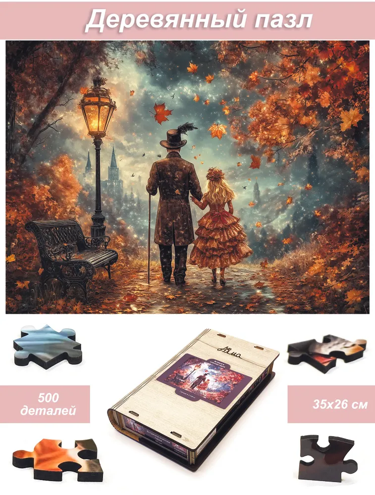 Пазл деревянный Алма 500 деталей. Города и страны. Встреча в осеннем парке.