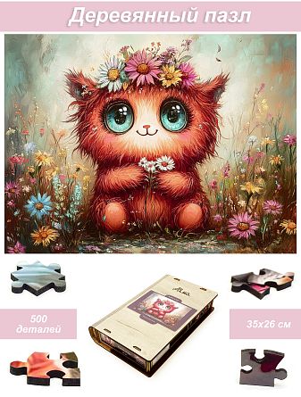 Пазл деревянный Алма 500 деталей. Милые монстрики. Рыжик на лугу