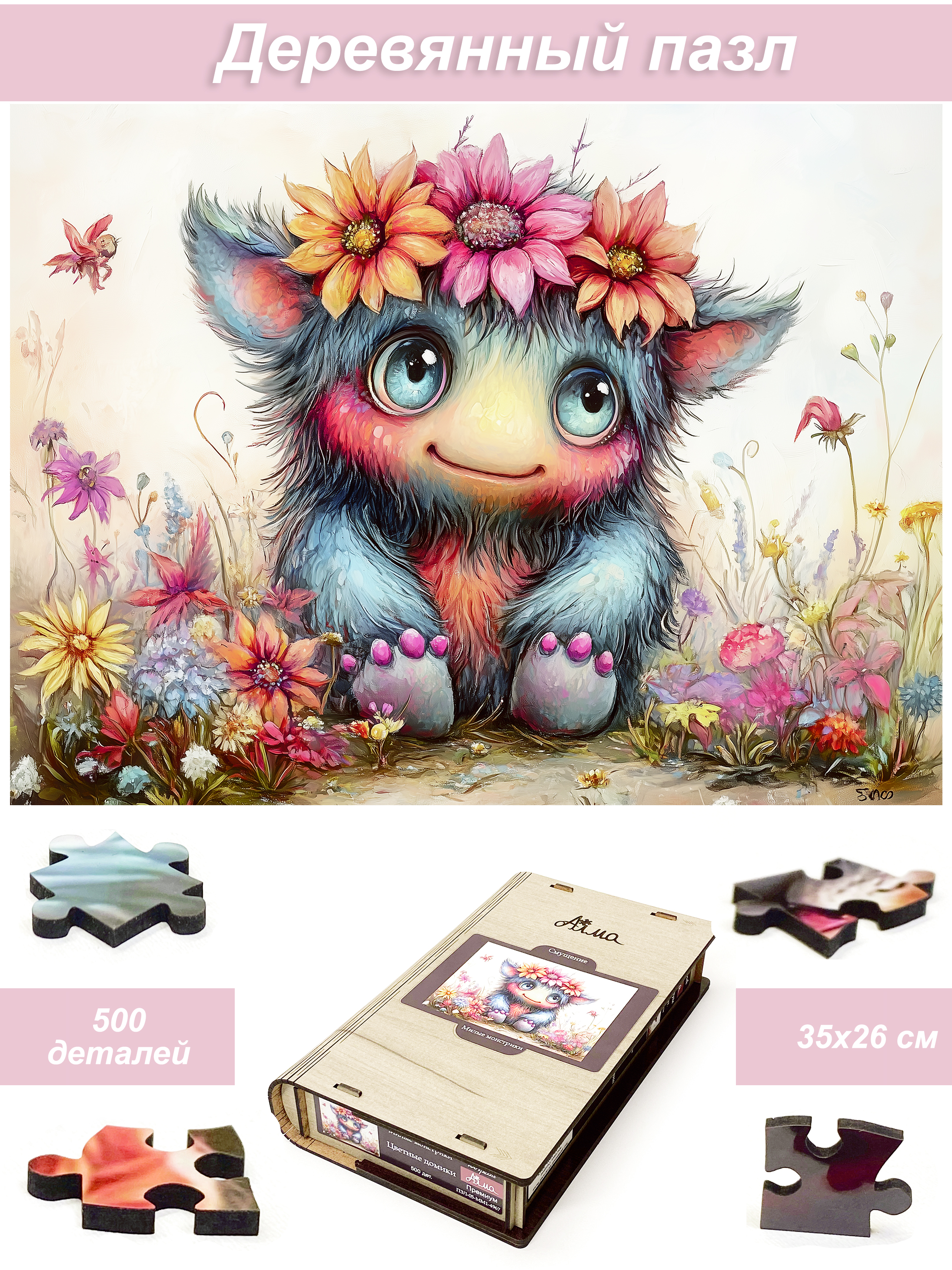 Пазл деревянный Алма 500 деталей Милые монстрики. Смущение