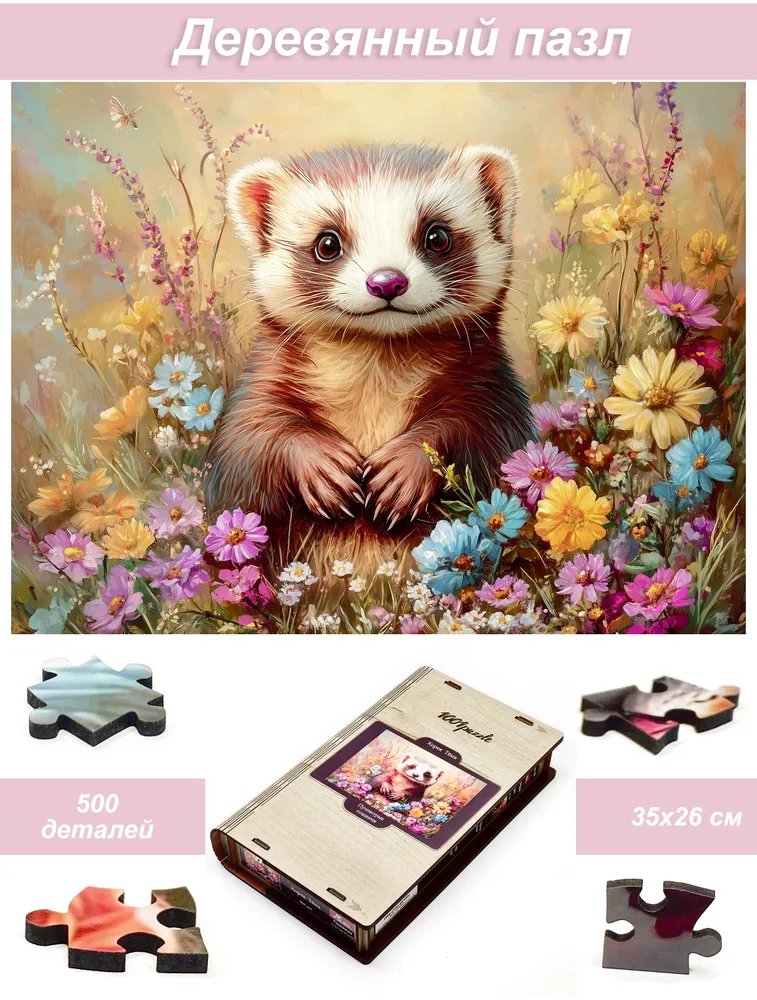 Пазл деревянный Алма 500 деталей Пушистрые создания. Хорек Тёма