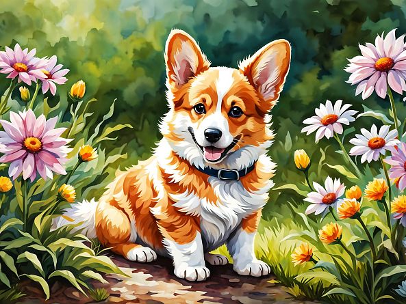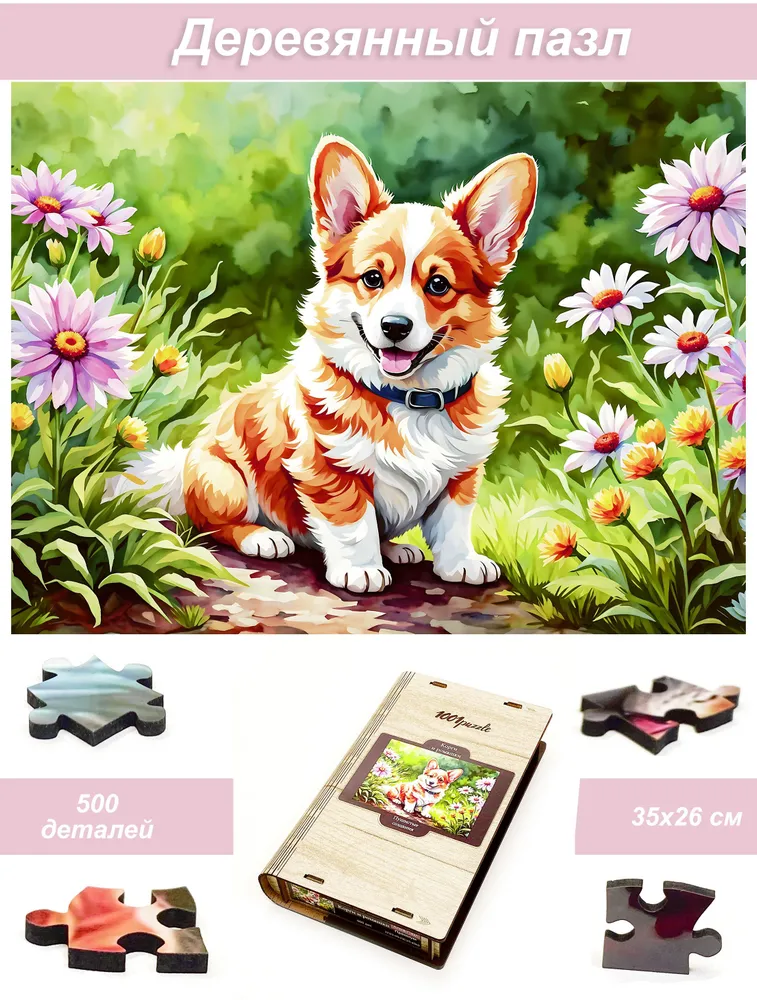 Пазл деревянный Алма 500 деталей Пушистые создания. Корги и ромашки