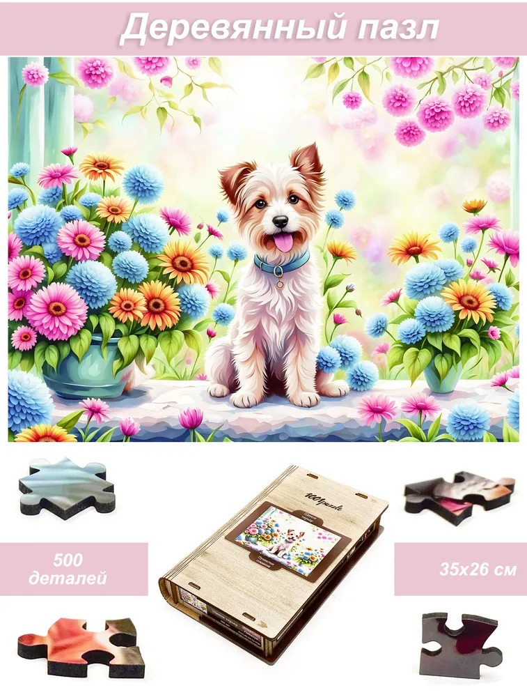 Пазл деревянный Алма 500 деталей Пушистые создания. Щенок Терьер №12