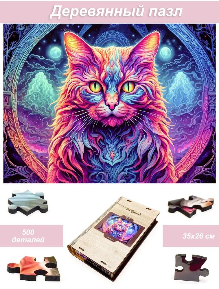 Пазл деревянный Алма 500 деталей Самые яркие. Лунный кот