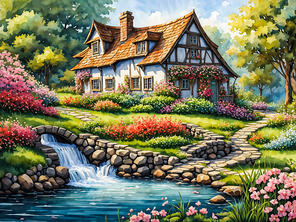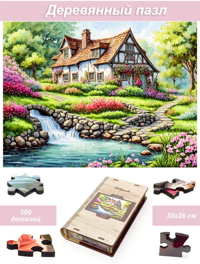 Пазл деревянный Алма 500 деталей Сказочные домики. Водопад у дома