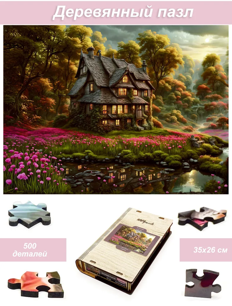 Пазл деревянный Алма 500 деталей Сказочные домики. Коттедж в ночи