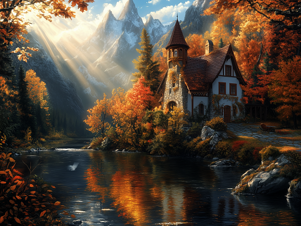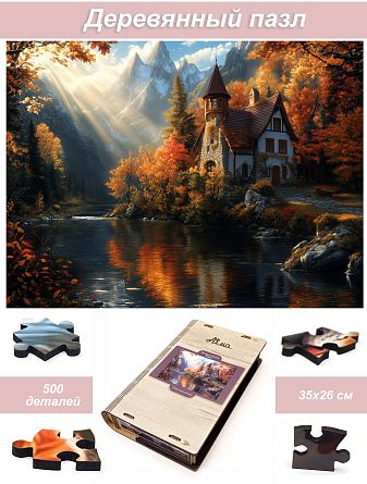 Пазл деревянный Алма 500 деталей. Сказочные домики. Коттедж в золоте осени