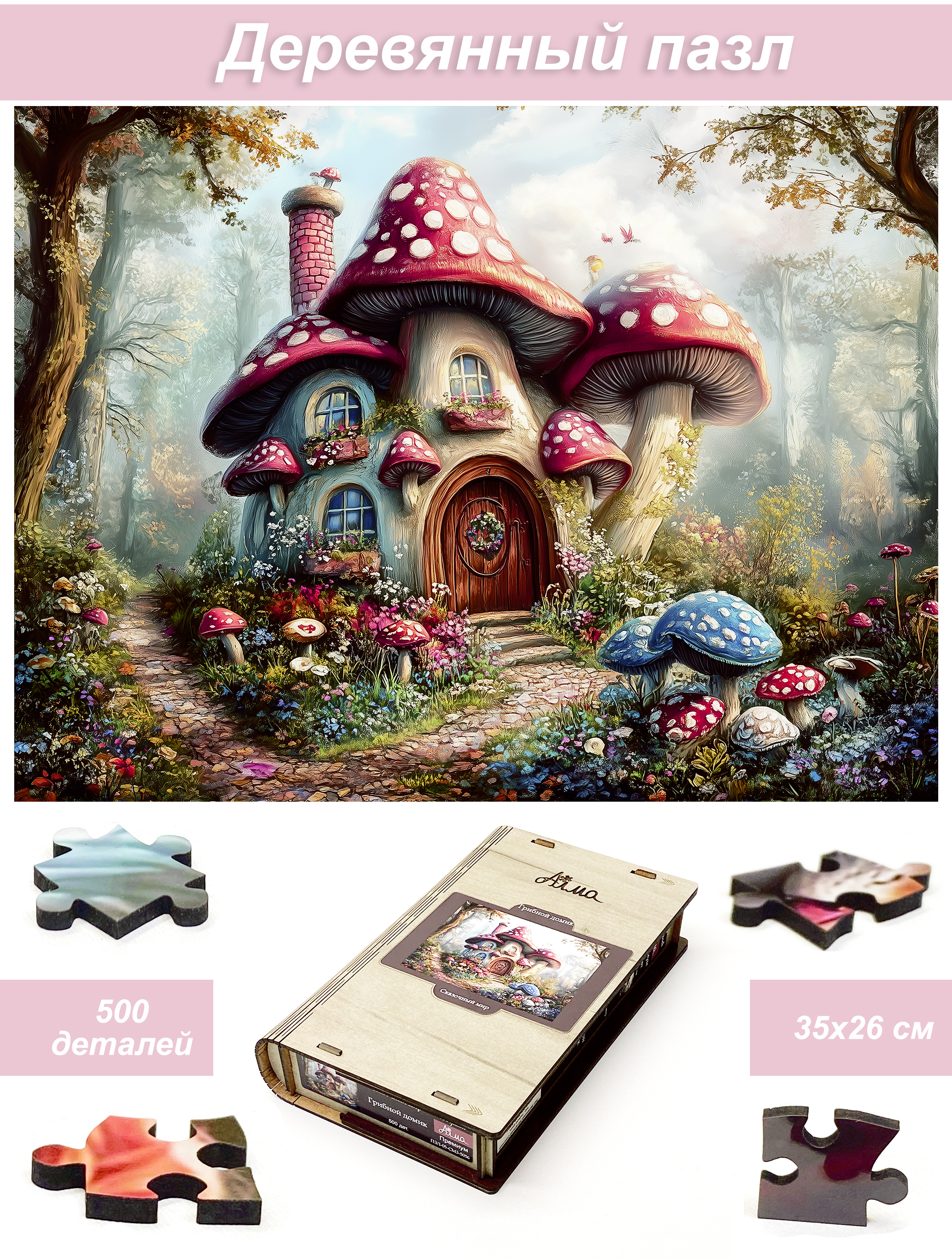 Пазл деревянный Алма 500 деталей Сказочный мир. Грибной домик
