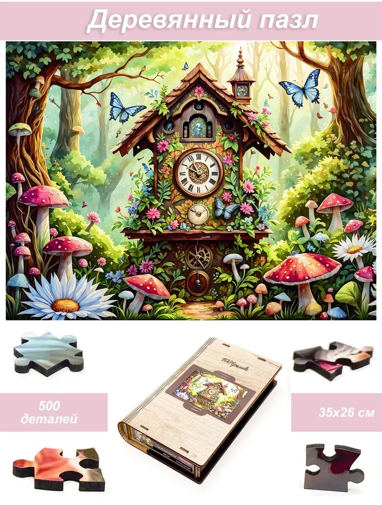 Пазл деревянный Алма 500 деталей Странное время. Грибное время