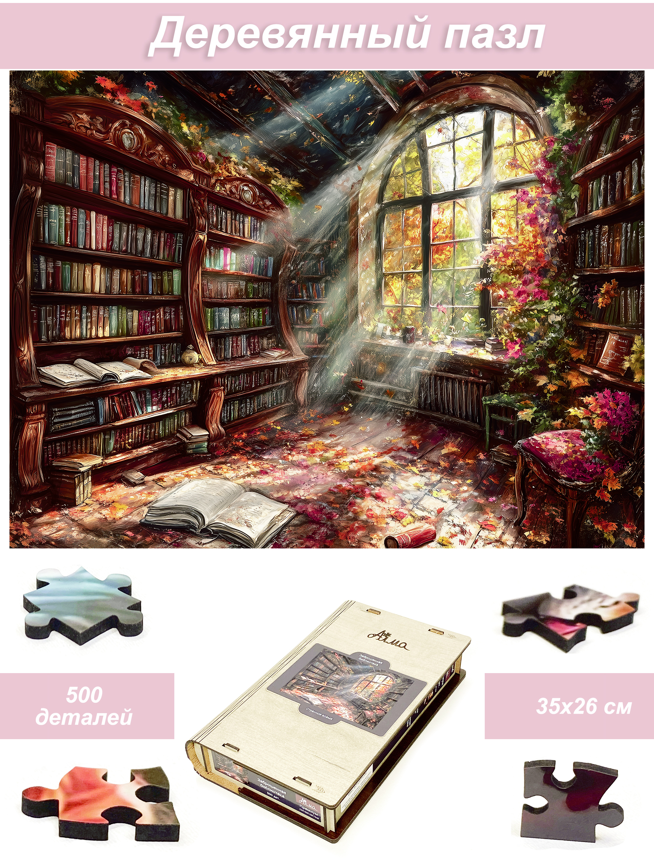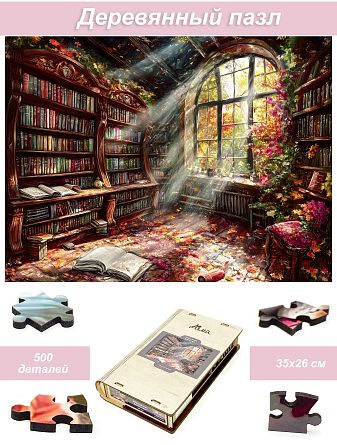 Пазл деревянный Алма 500 деталей. Странное время. Заброшенная библиотека.