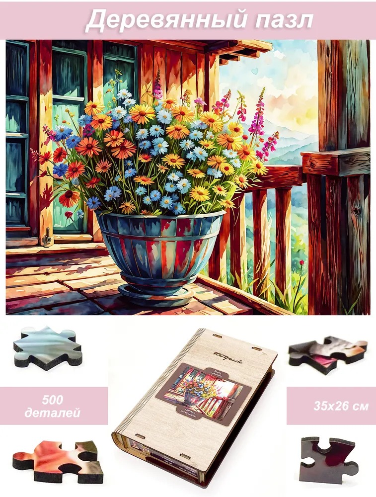 Пазл деревянный Алма 500 деталей Цветы и натюрморты. Вазон с цветами