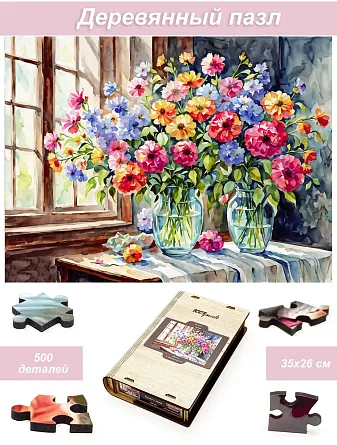 Пазл деревянный Алма 500 деталей Цветы и натюрморты. Букет у окна