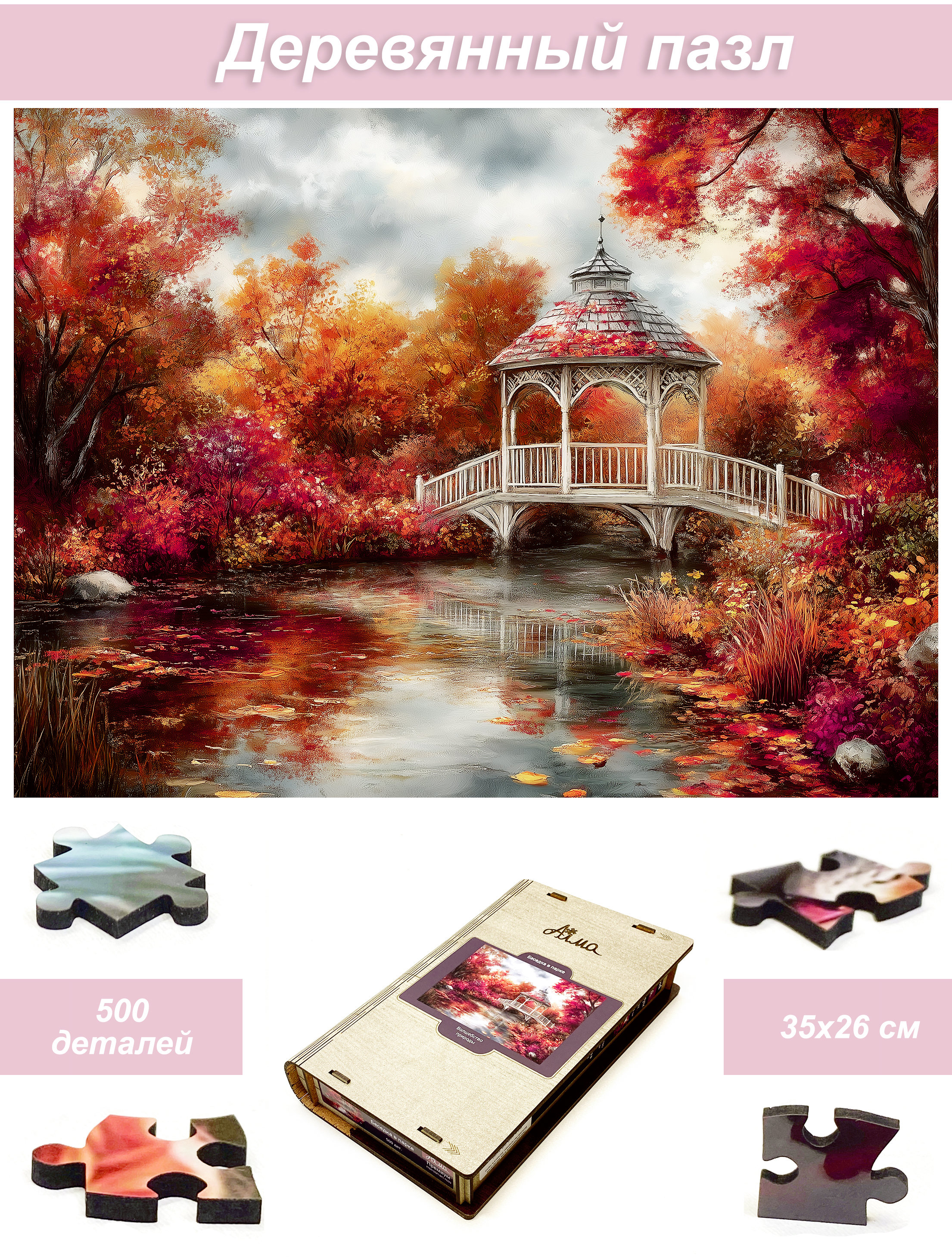 Пазл деревянный Алма 500 деталей. Волшебство природы. Беседка в парке