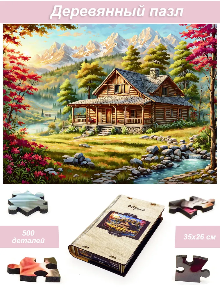 Пазл деревянный Алма 500 деталей Волшебство природы. Коттедж в горах