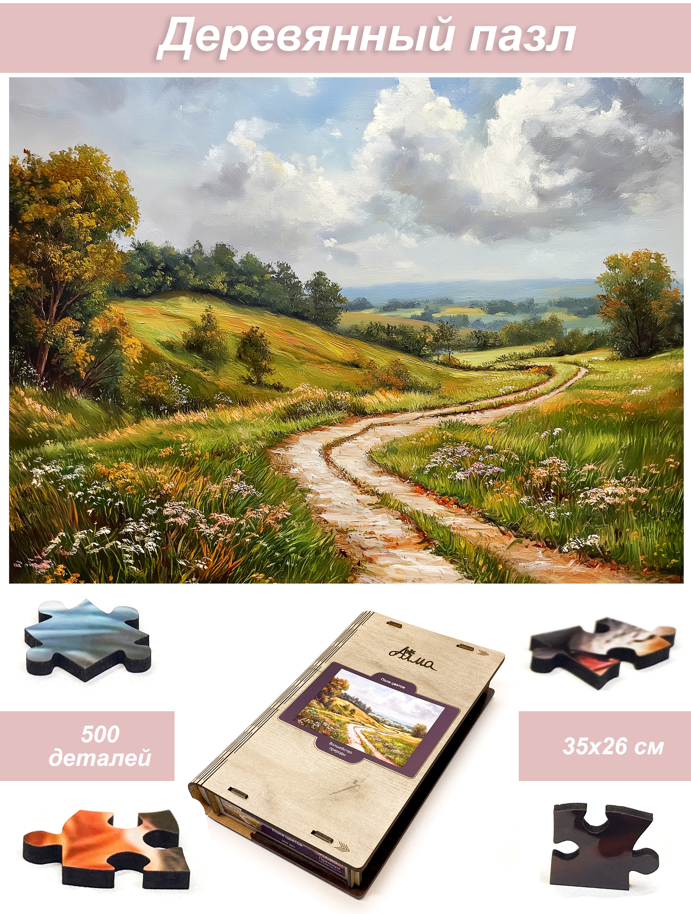 Пазл деревянный Алма 500 деталей. Волшебство природы. Поле цветов