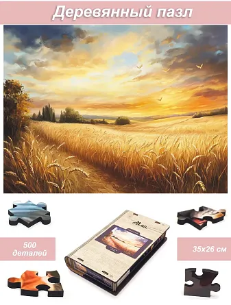 Пазл деревянный Алма 500 деталей. Волшебство природы. Пшеничное поле