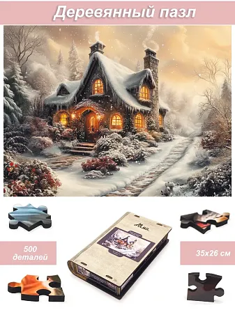Пазл деревянный Алма 500 деталей. Волшебство природы. Сказочный домик в зимнем саду