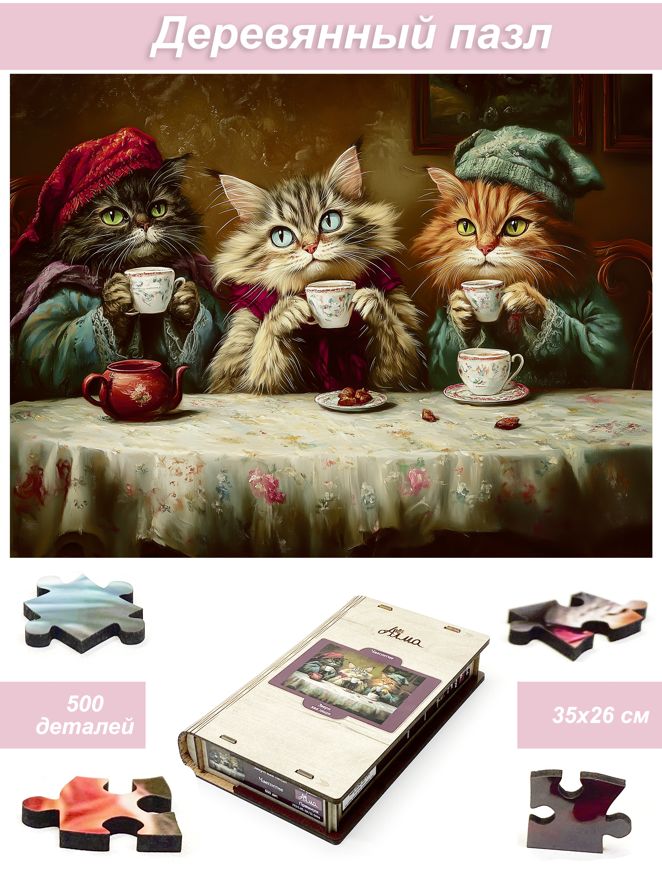 Пазл деревянный Алма 500 деталей Звери как люди. Чаепитие