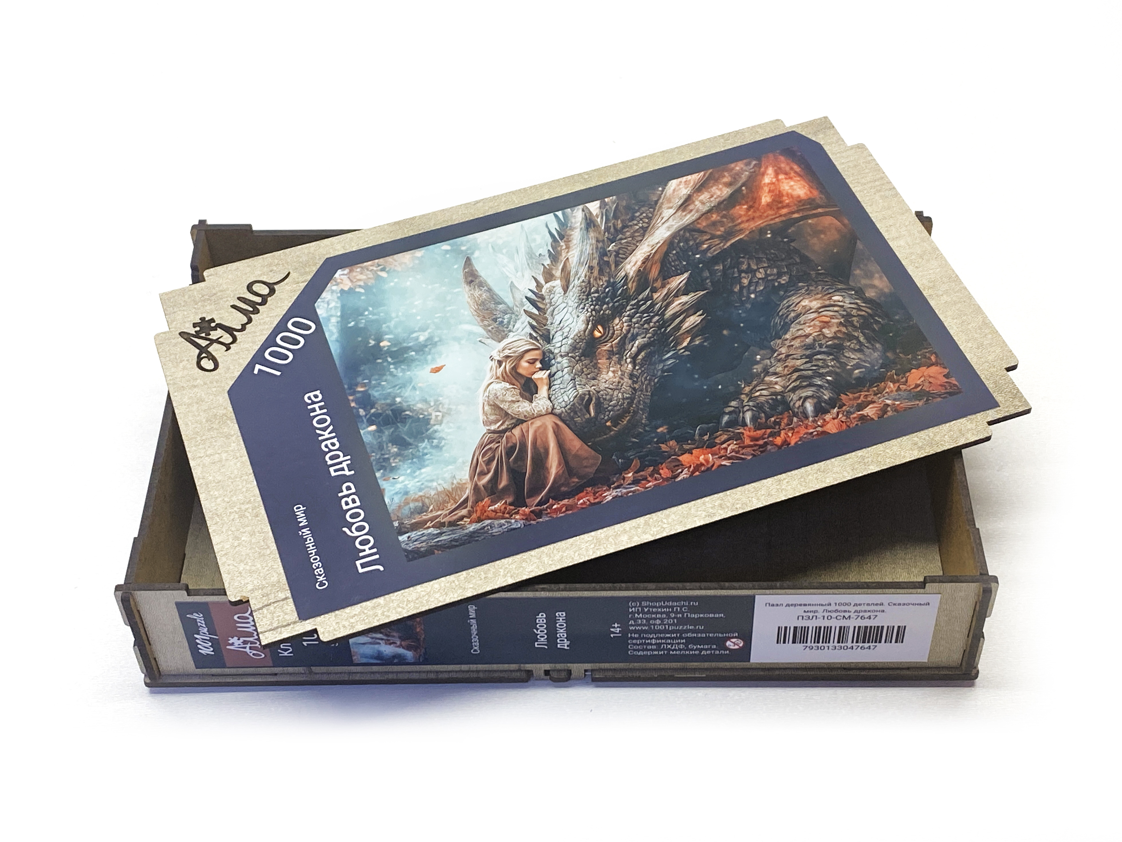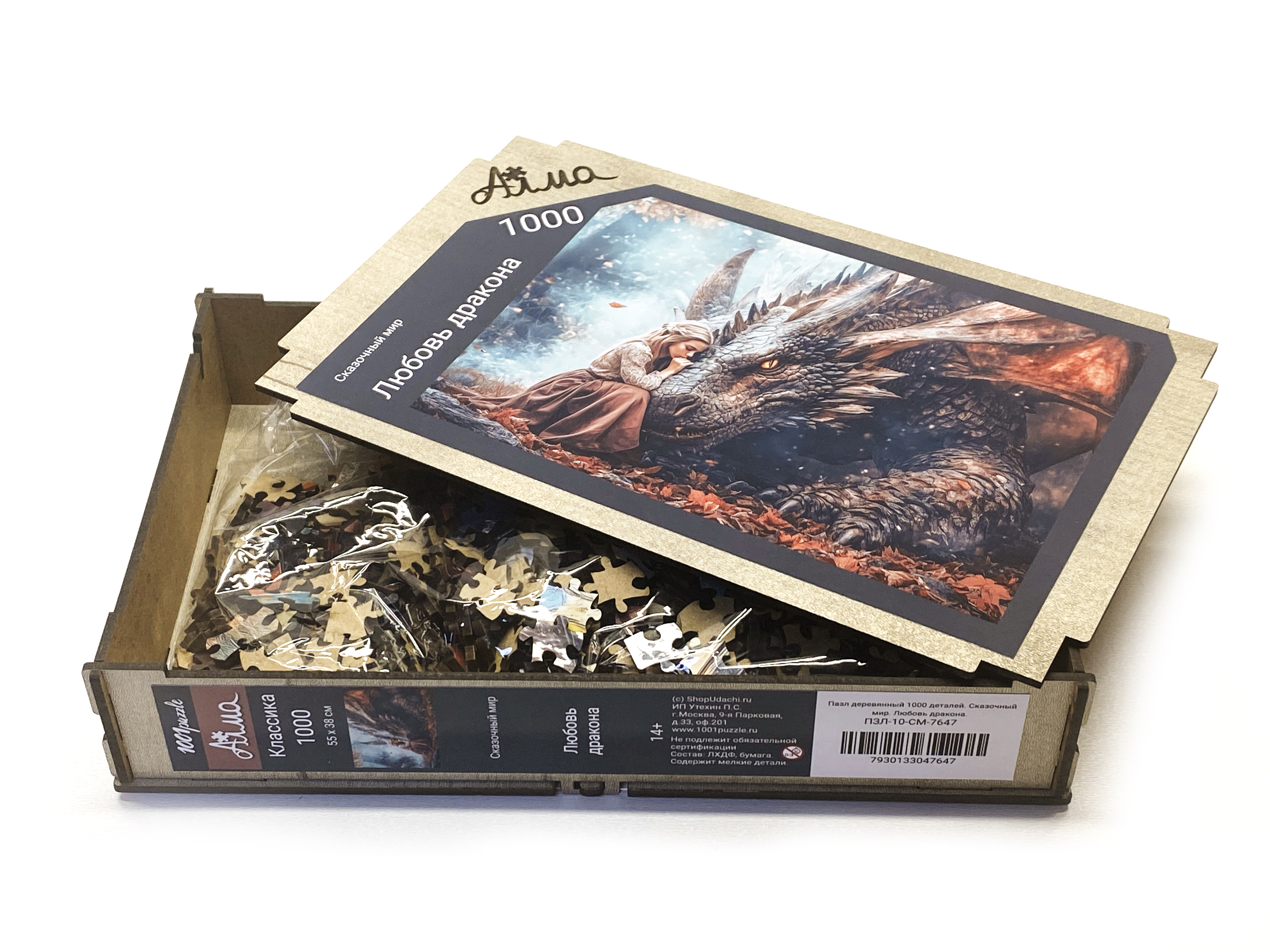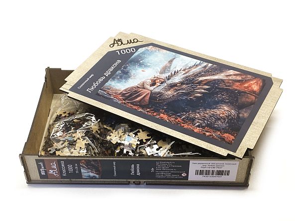 Пазл деревянный Алма 1000 деталей. Сказочный мир. Любовь дракона.
