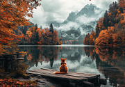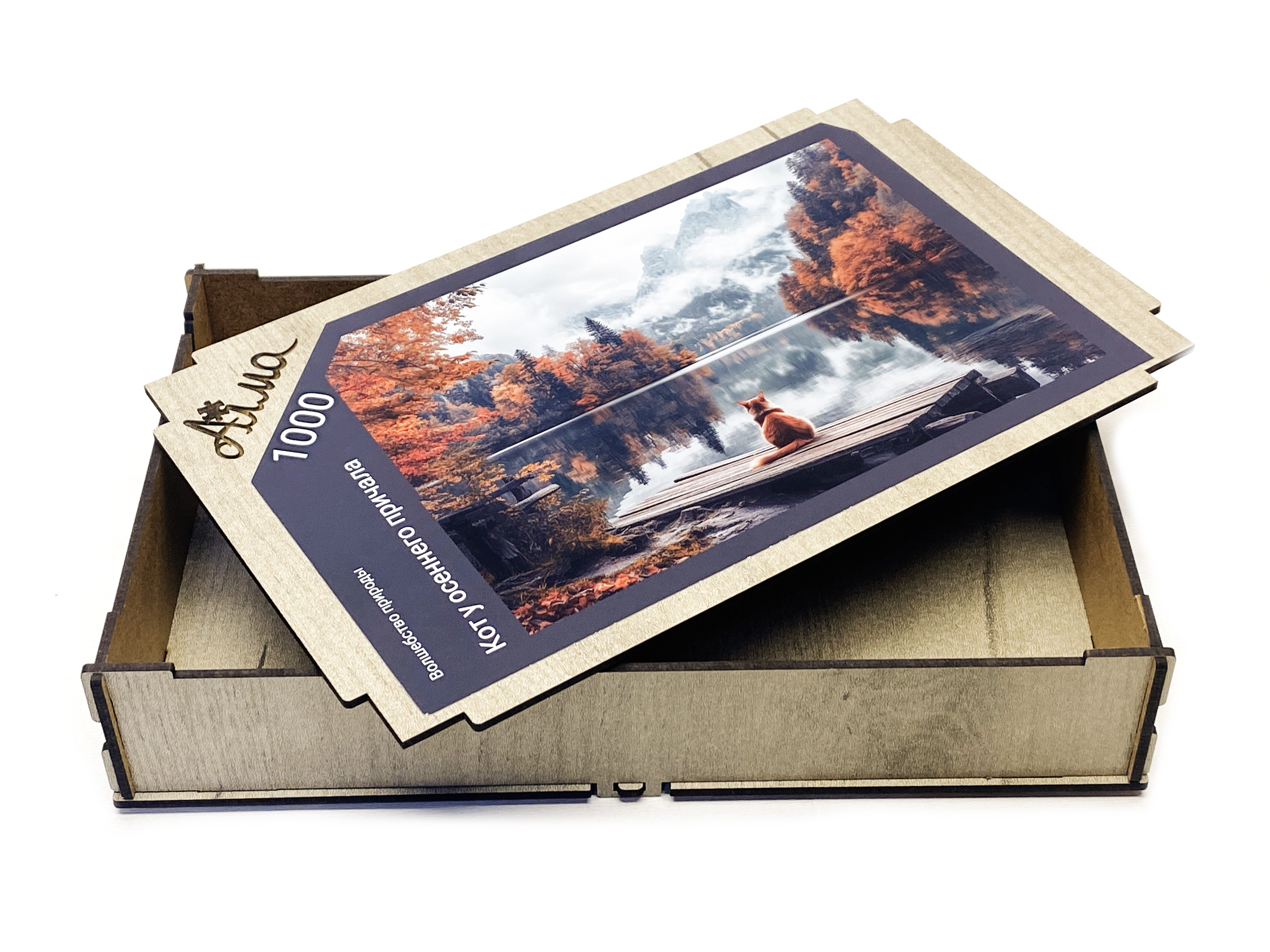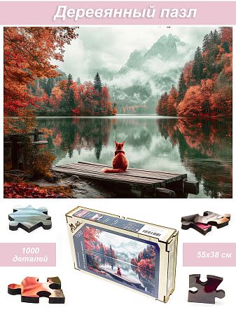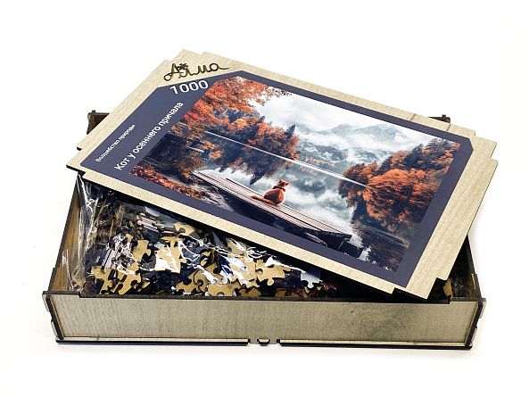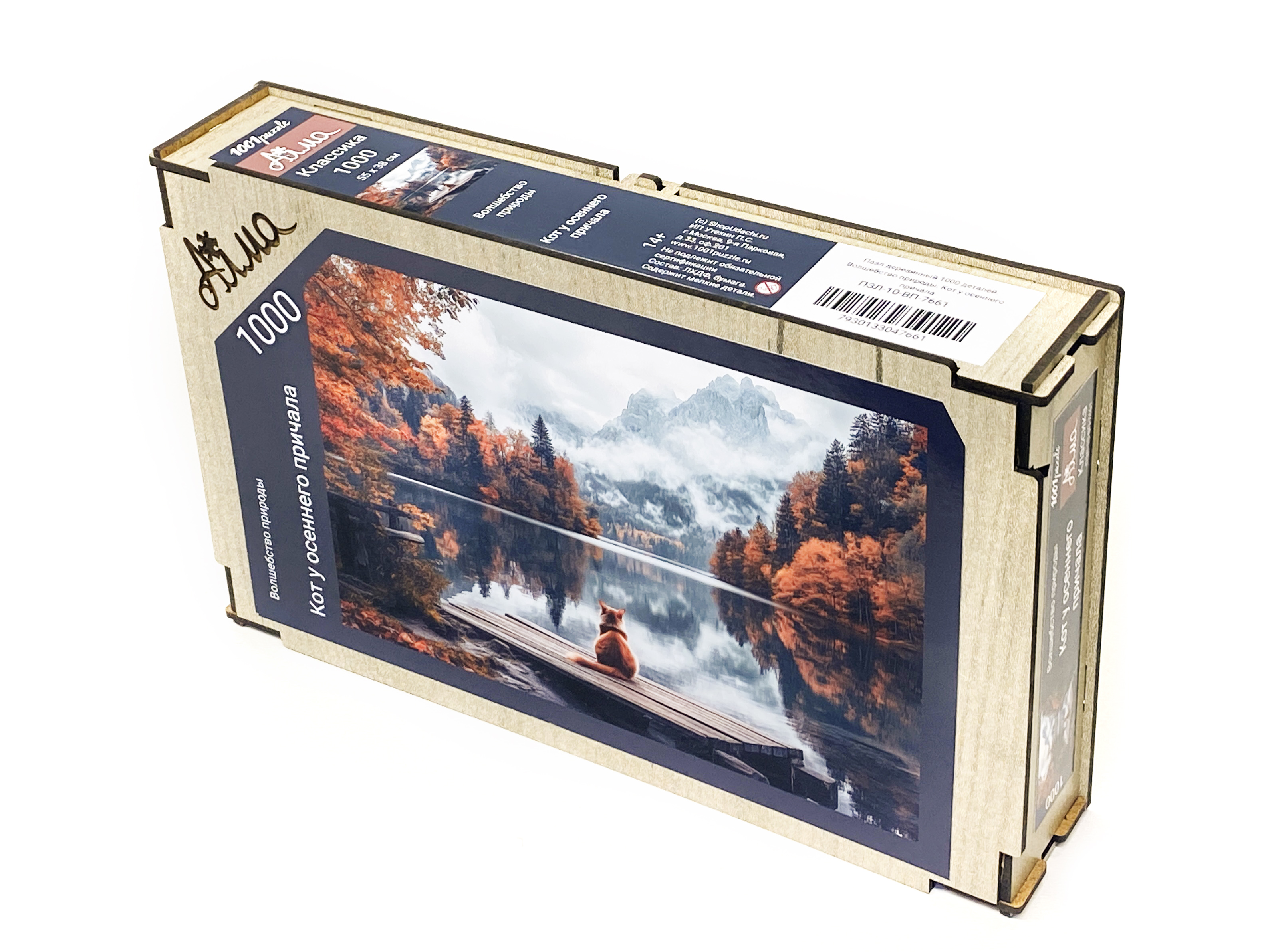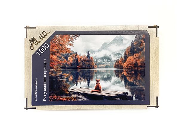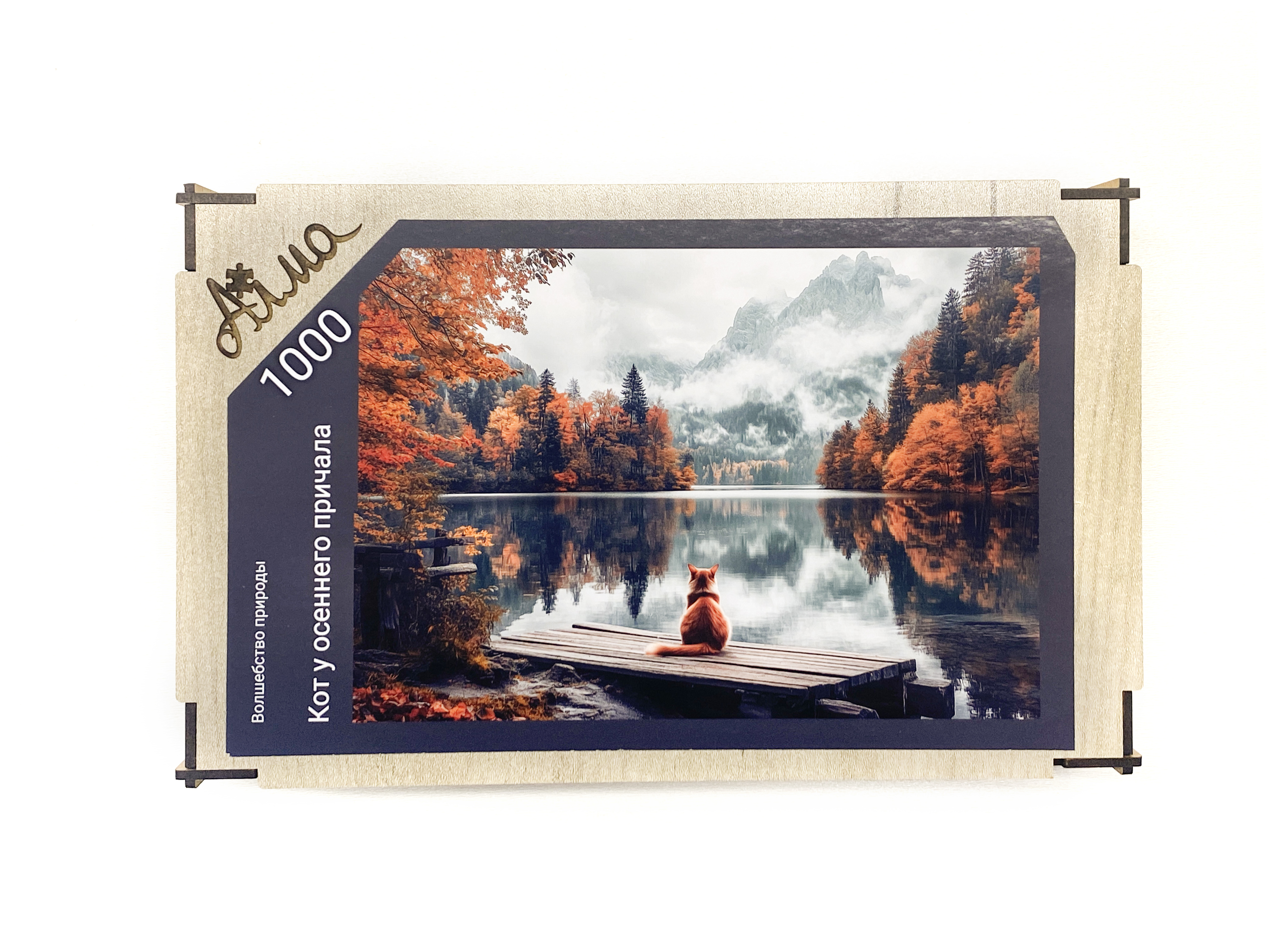 Пазл деревянный Алма 1000 деталей. Волшебство природы. Кот у осеннего причала