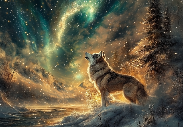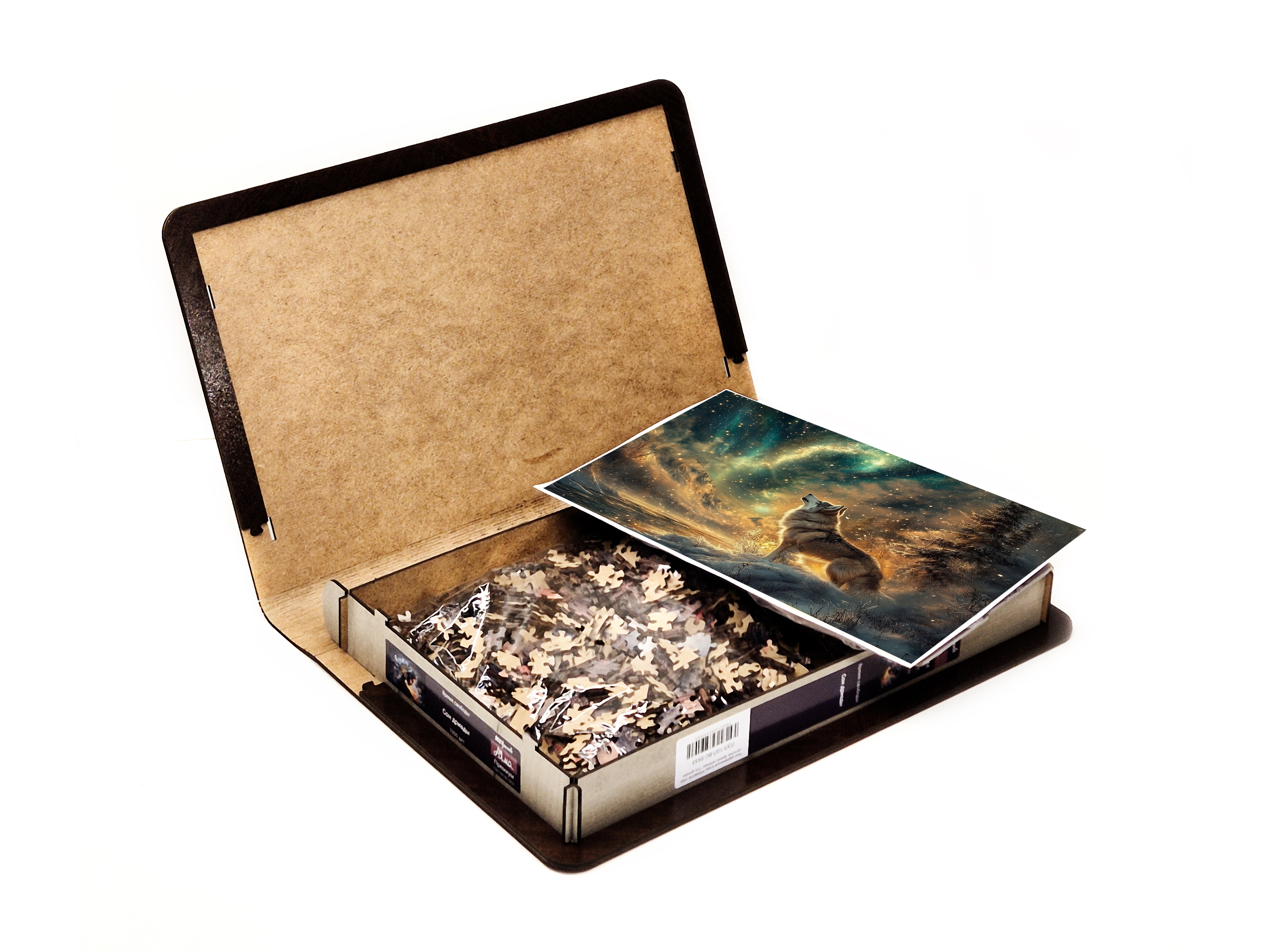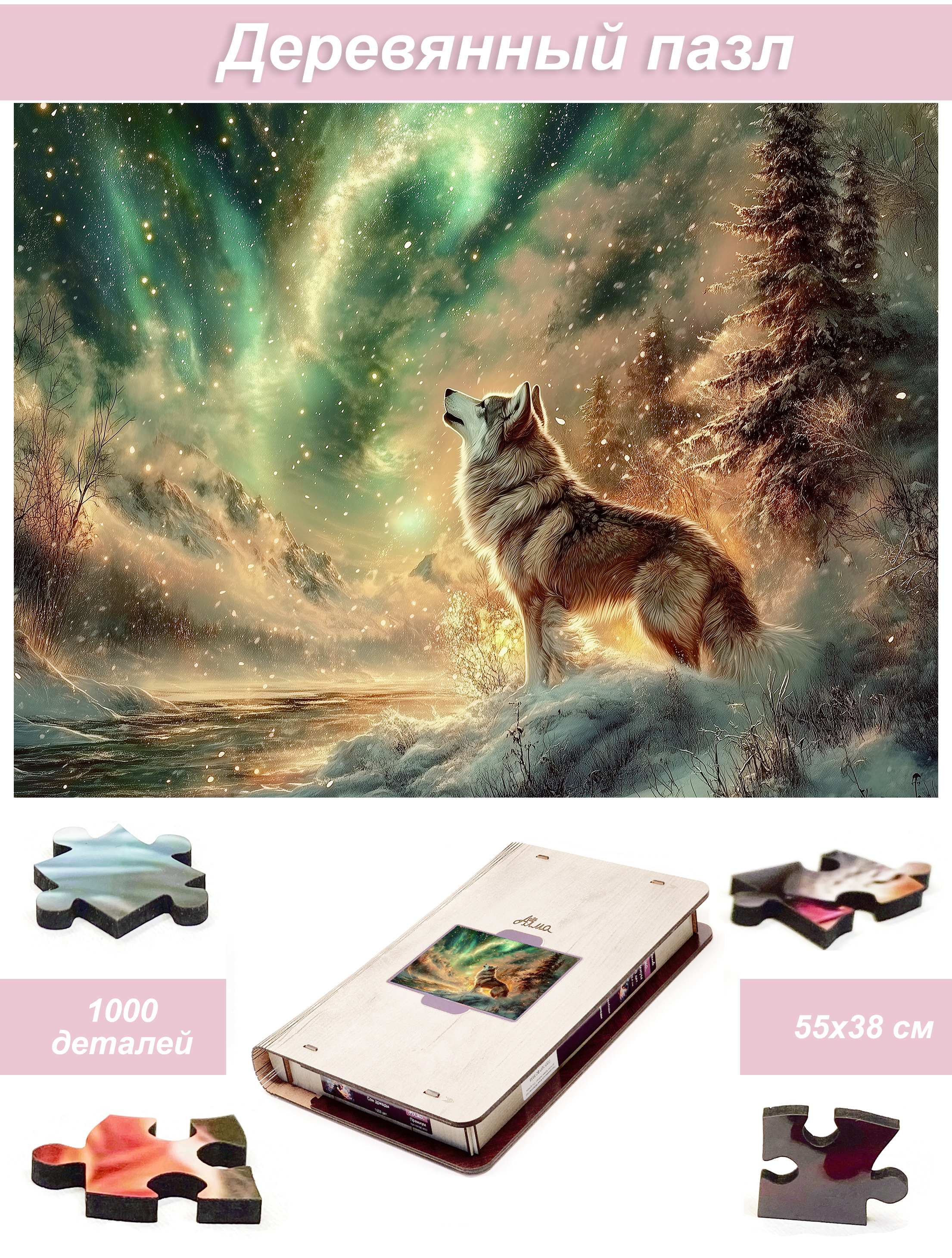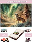 Пазл деревянный Алма ПРЕМИУМ 1000 деталей. Дикие и симпатичные. Волк под северным сиянием